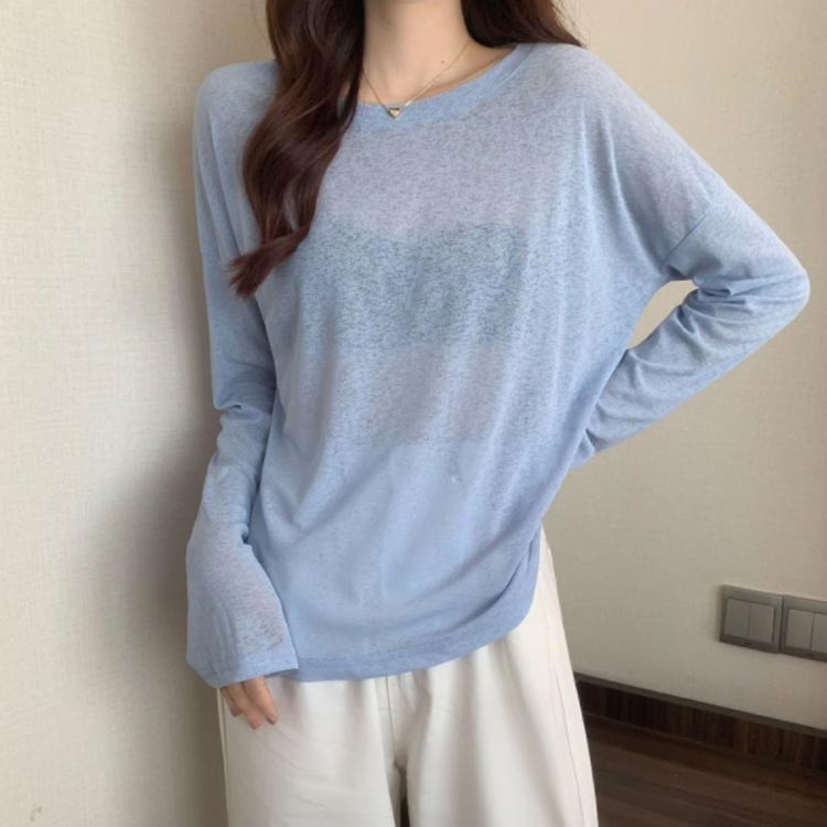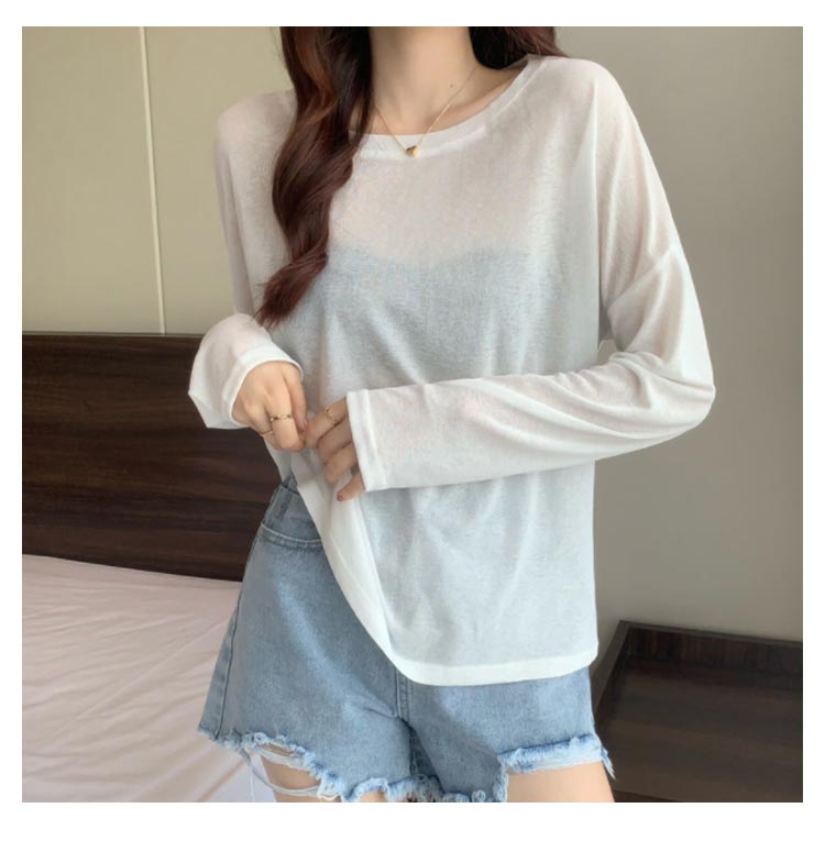 シアートップス 長袖 tシャツ ゆったり レイヤード クルーネック 薄手 ひんやり 透け感 おしゃれ 春夏 秋 長袖tシャツ シアーロングスリーブTシャツ 紫外線対策 重ね着 春 ロンT おしゃれ 大きいサイズ トップス 送料無料 体型カバー