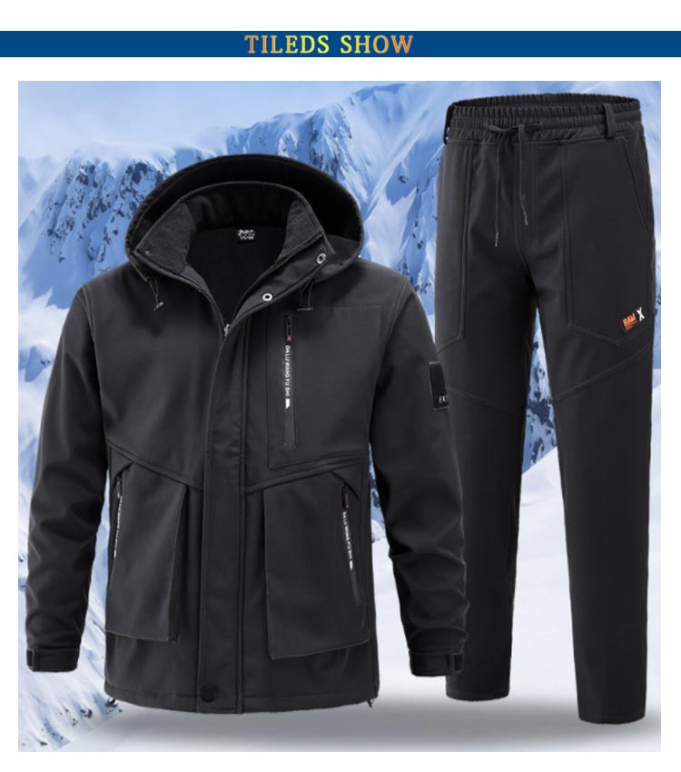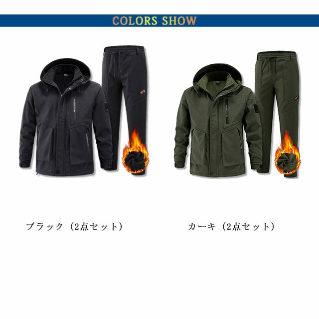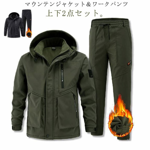 メンズ マウンテンジャケット ワークパンツ 上下セット 防寒 防水 撥水 防風 厚手 裏起毛 裏ボア マウンテンパーカー 長ズボン 2点セット 暖かい アウター 登山服 防寒着 作業パンツ ハイキングジャケット 自転車 ゴルフ アウトドア スポーツ 作業 送料無料