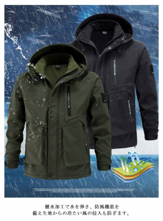 | マウンテンジャケット&ワークパンツ 上下2点セット。 裏地には優しい肌触りが特徴のボアフリースが使われているので風邪を通さず、保温性も兼ね揃えたアイテムに仕上げられております。 撥水加工で水を弾き、防風機能を備え生地からの冷たい風の侵入も防ぎます。 裏起毛でしっかり暖か、釣り、登山などアウトドアスポーツや屋外作業に最適! | |