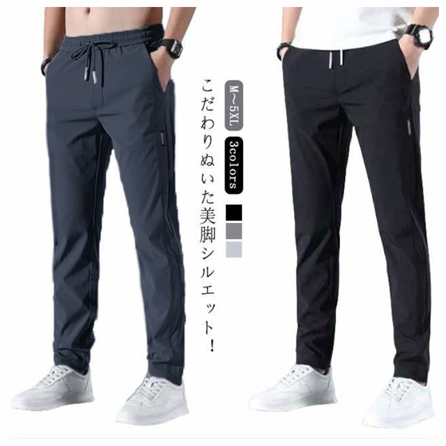 パンツ メンズ 仕事 黒 チノパン スキニーパンツ スリム 接触冷感 チノパンツ ボトムス スキニー スリムパンツ テーパードパンツ 春夏 涼しい 涼感 伸縮 薄手 イージーパンツ ズボン エアパンツ ゴルフパンツ ウエストゴム