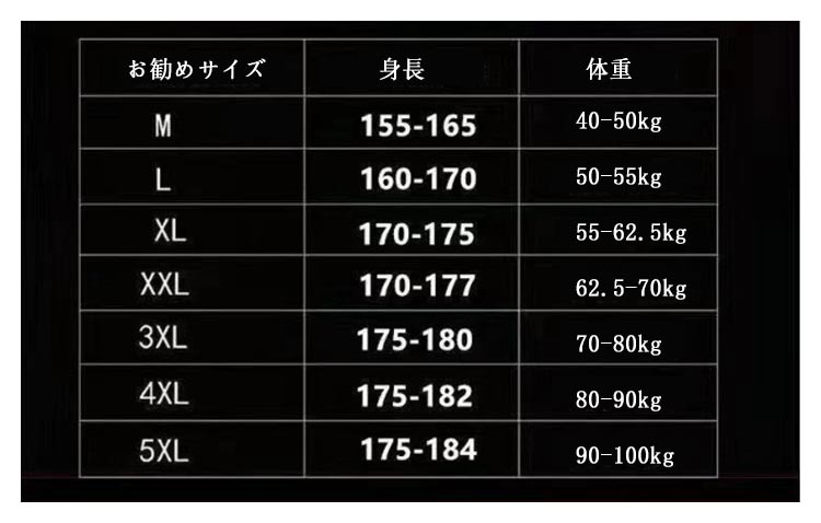| サイズ | M L XL 2XL 3XL 4XL 5XL |