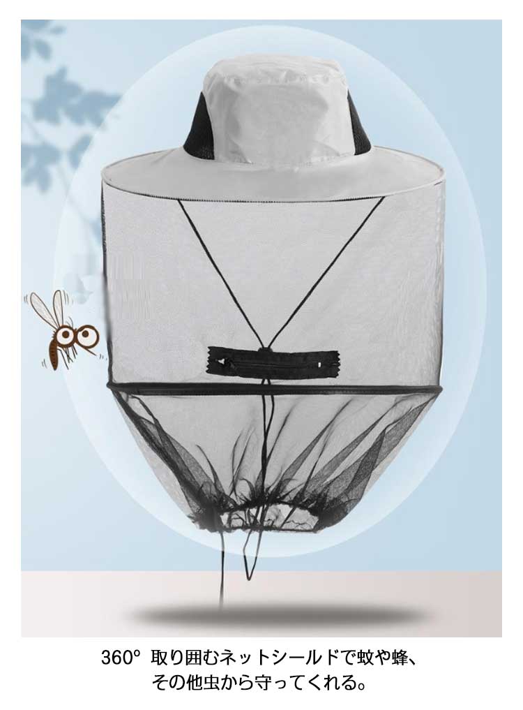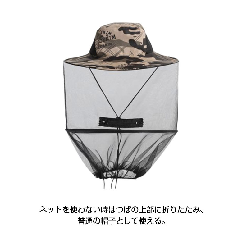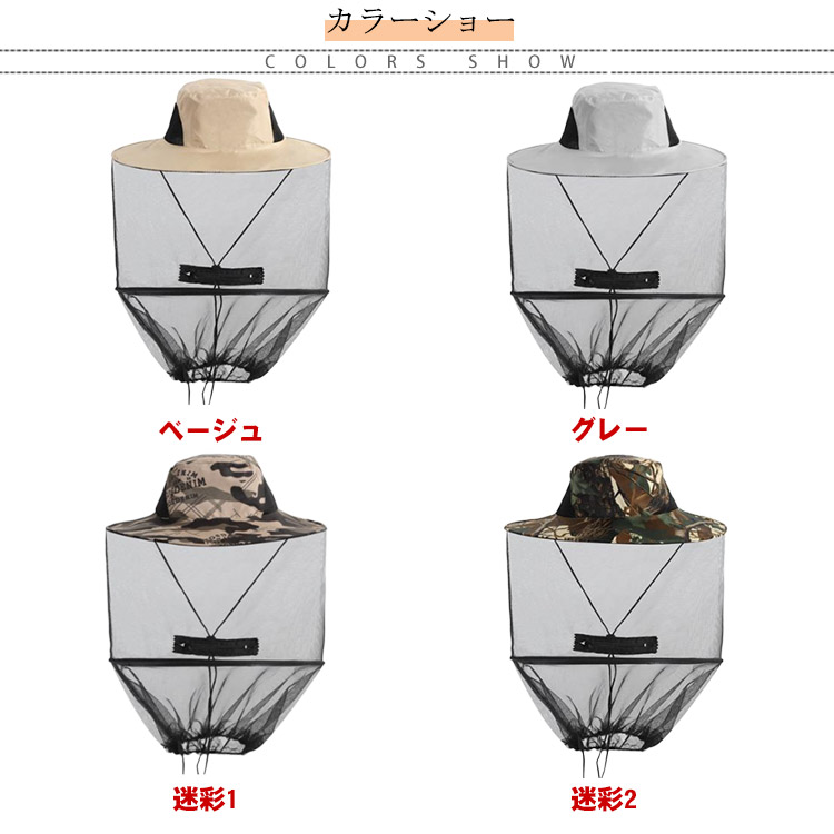| 【虫除け 日よけ】【メッシュネット付き帽子】【4colors】 虫の侵入を防ぐネット付き帽子です、通気性がいい。 あご紐付きなので風にも飛ばされにくくなっています。 360°取り囲むネットシールドで蚊や蜂、その他虫から守ってくれる。 吸汗速乾にも通気性にも優れ、快適な着心地! 被っても視界は非常に良好、高密度ですのでやぶ蚊や虫、蜂、アブ、ブヨ、ハエなどからの顔や首の虫刺されや羽音 を気にせず快適に屋外での作業に集中できます。 ネットを使わない時はつばの上部に折りたたみ、普通の帽子として使える。 | |