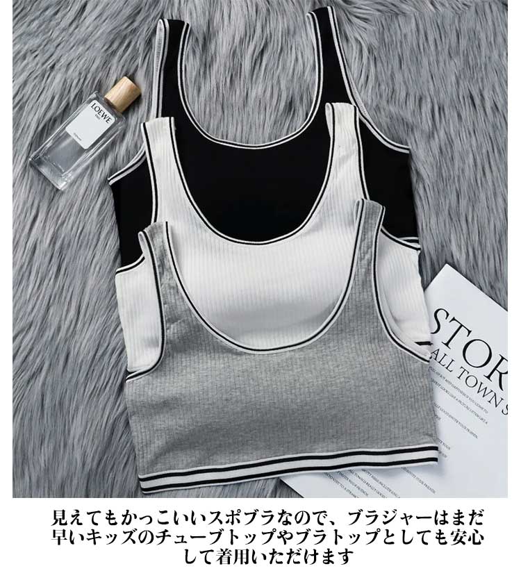 | 学生高学年~中学生向け女の子用下着。 スポーツブラとパンツの上下2点セットです。 コットン素材で気持ちいい肌触り。 修学旅行?水泳?スイミング?部活?体育やお泊り会におすすめのジュニア向けアウターセット。 シンプルでおしゃれな人気のデザインがポイント。 使いやすくて安い定番カラーをご用意。 伸縮性のあるノンストレスな着心地。体にピッタリフィットして揺れないブラトップなのでダンス衣装のインナーとしても大活躍! 見えてもかっこいいスポブラなので、ブラジャーはまだ早いキッズのチューブトップやブラトップとしても安心して着用いただけます | |