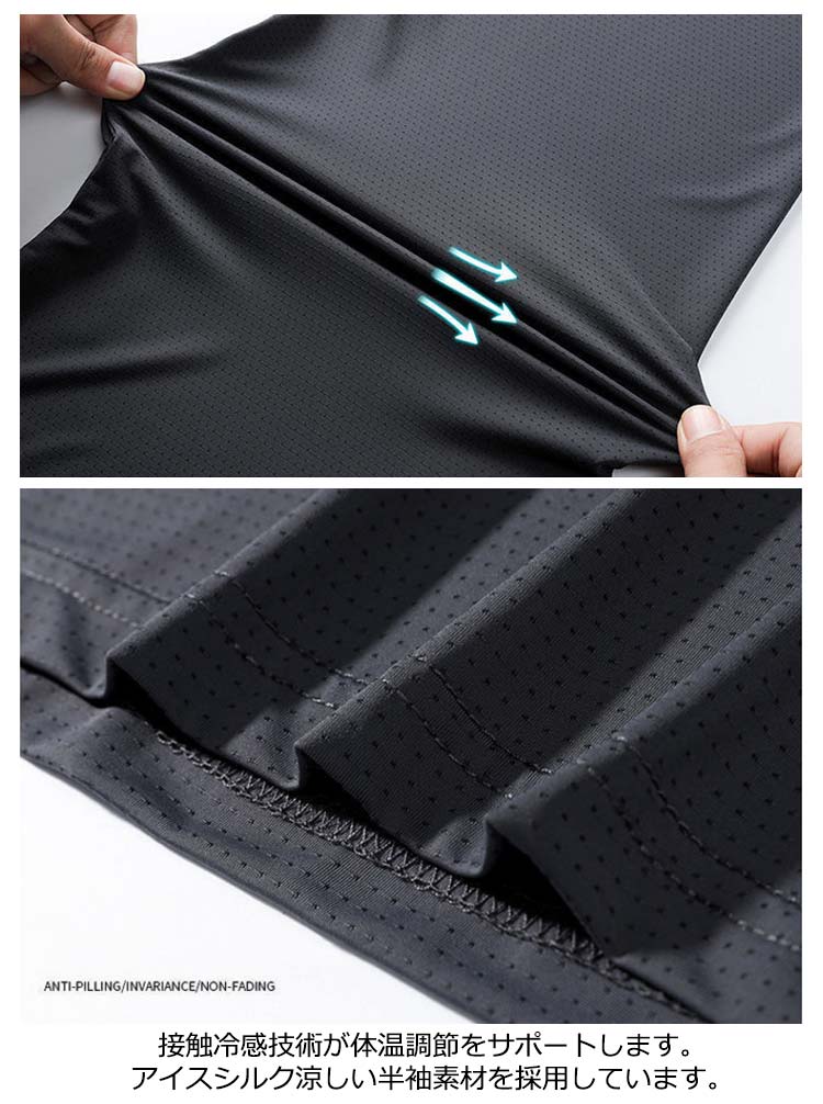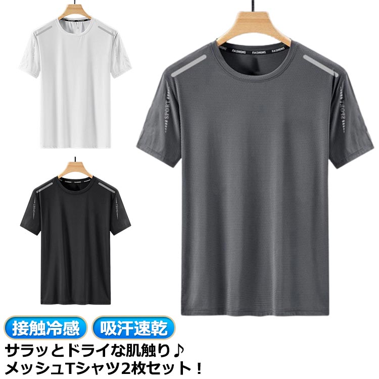 サラッとドライな肌触り♪ メッシュTシャツ2枚セット!軽量かつ通気性に優れ、吸汗速乾性が高い素材を使用しています。接触冷感技術が体温調節をサポートします。アイスシルク涼しい半袖素材を採用しています。極薄で高伸縮性があり、着心地が快適です。UVカット効果があり、紫外線から身を守ります。