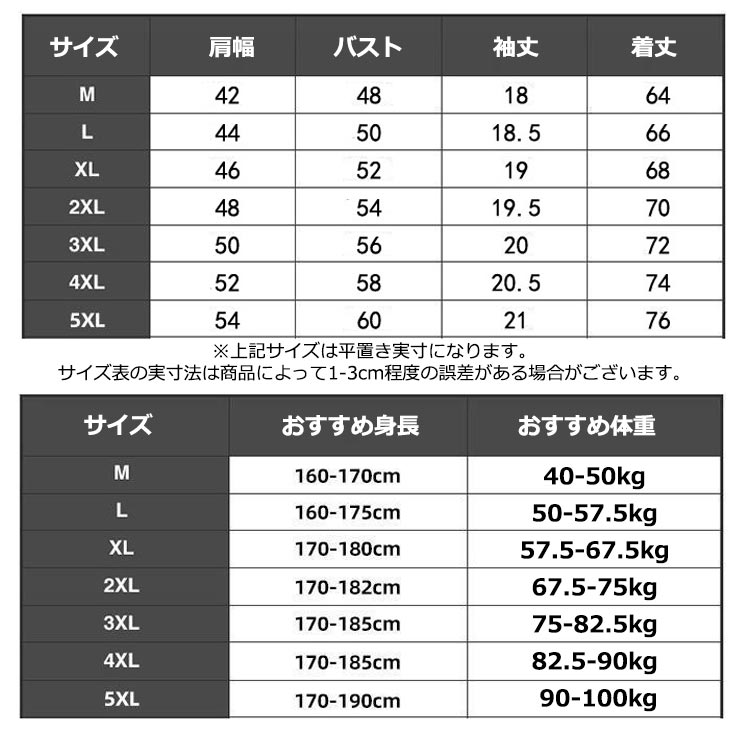 | サイズ | M L XL 2XL 3XL 4XL 5XL |