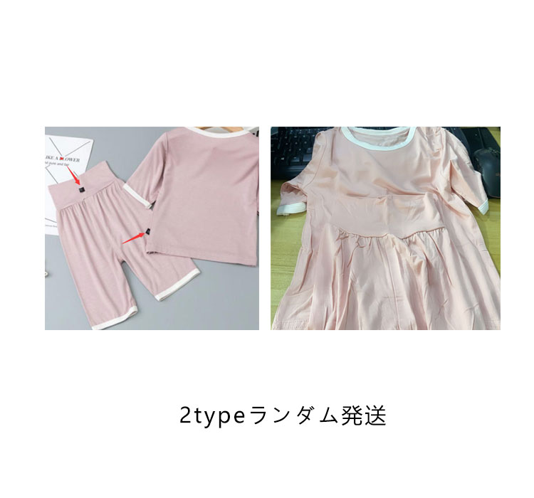 | 5分袖?5分丈ズボンの上下セットのパジャマ。 やわらかな腹巻きがパンツについているのでお腹が冷えにくい。 滑らかで肌触り良く、吸湿性にも優れた綿100%のスムース素材。 | |
