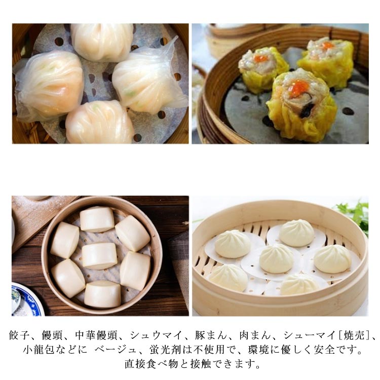 | お得なせいろシート100枚セット。 穴あきで蒸気が通りやすいです。 料理がくっつかず、サラっとはがせてキレイに仕上がります。 餃子、饅頭、中華饅頭、シュウマイ、豚まん、肉まん、シューマイ[焼売]、小龍包などに ベージュ、蛍光剤は不使用で、環境に優しく安全です。 直接食べ物と接触できます。 ノンフライヤーや天板やセイロ、蒸し器などのサイズに合わせて選べます。 | |