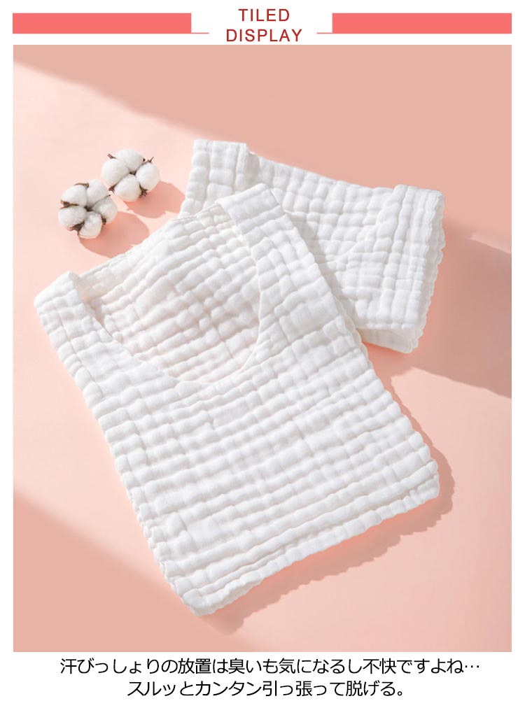 | 伝統技術と新しいアイデアで生まれた、ワンランク上の汗取りシャツ。 汗びっしょりの放置は臭いも気になるし不快ですよね… スルッとカンタン引っ張って脱げる 汗をよく吸い、脱ぐときはひっぱるだけ! 服を着たままスルッと脱げる、気になる汗ジミも脱ぐだけでサラッ! | |