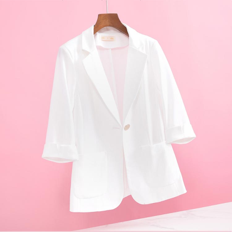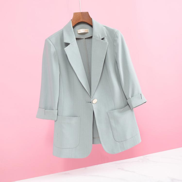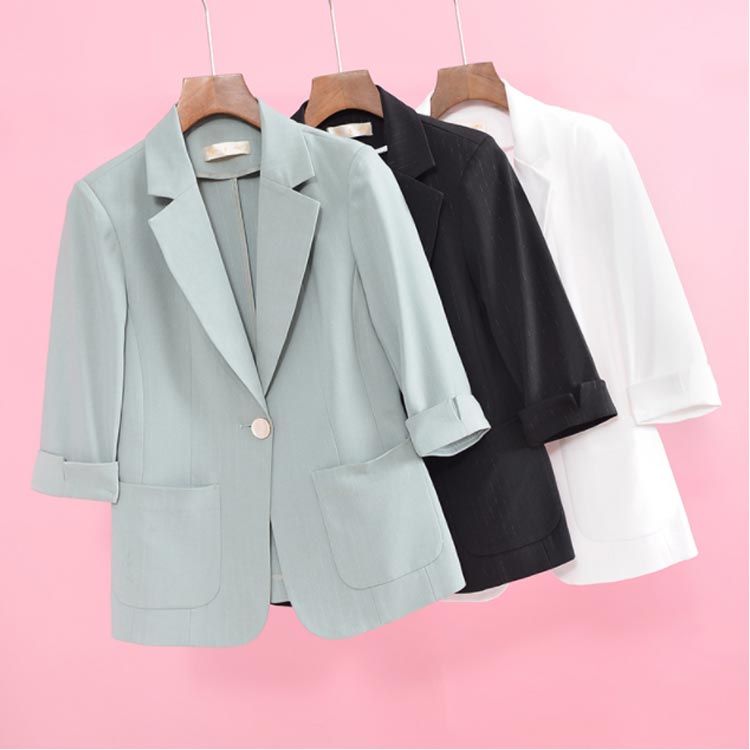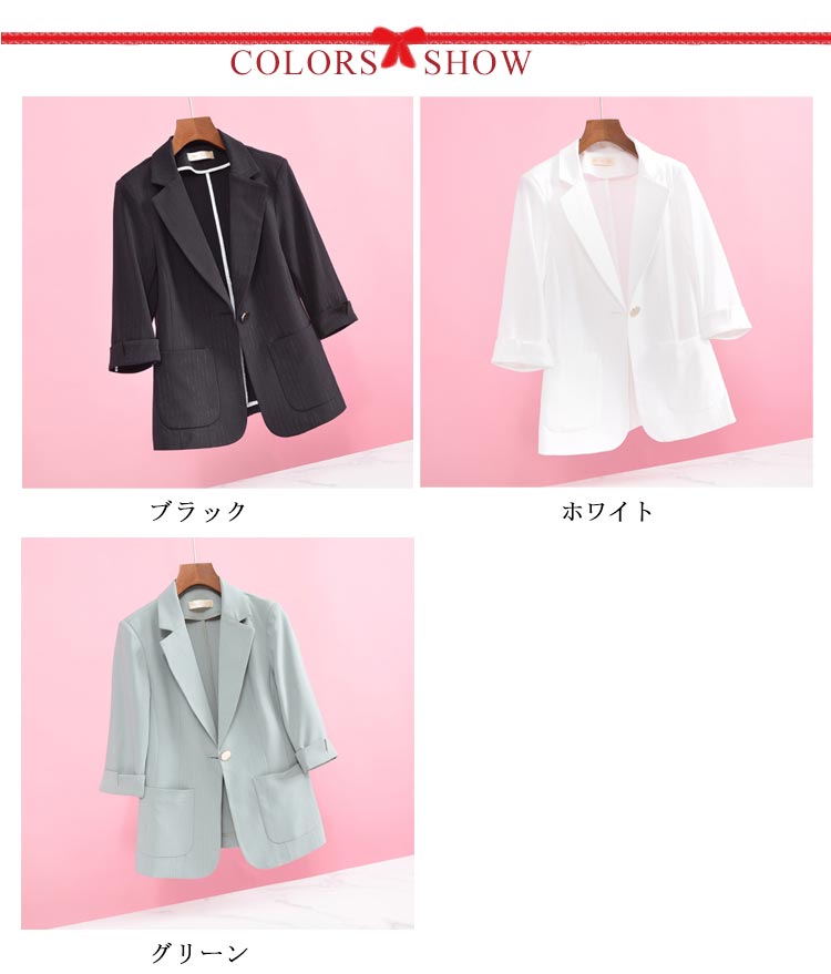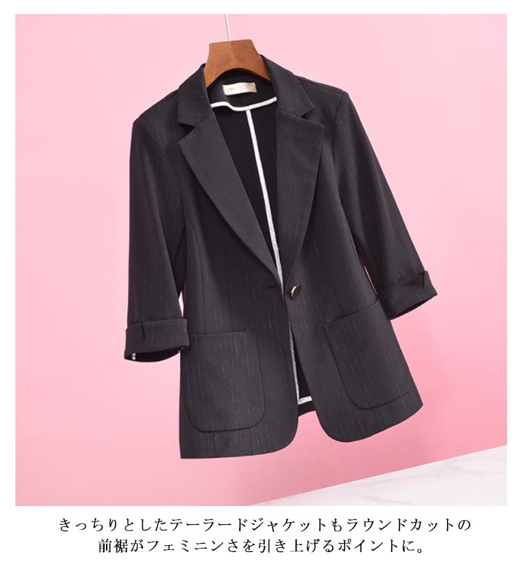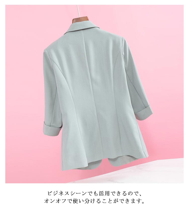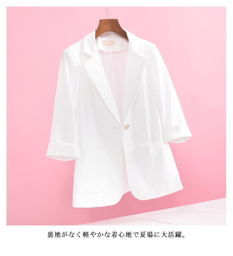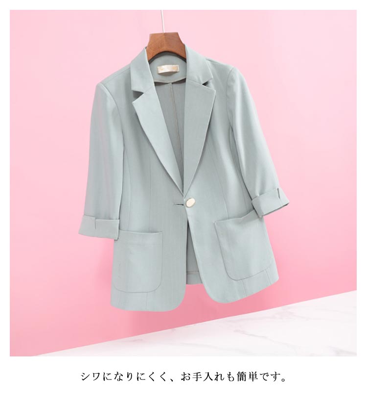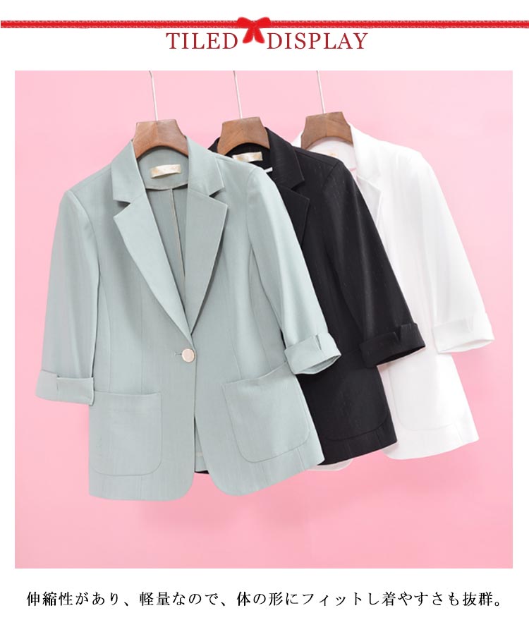 サマージャケット レディース テーラードジャケット 7分袖 スリム フィット ポケット付き 裏地なし 薄手 春 夏 アウター ビジネス セレモニー オフィス 通勤 冷房対策 ライトアウター ママスーツ ショート丈 30代 40代 50代 上品 【送料無料】