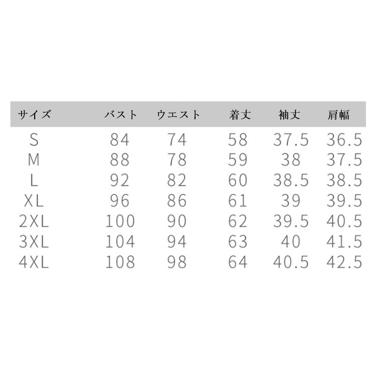 | サイズ | S M L XL 2XL 3XL 4XL |