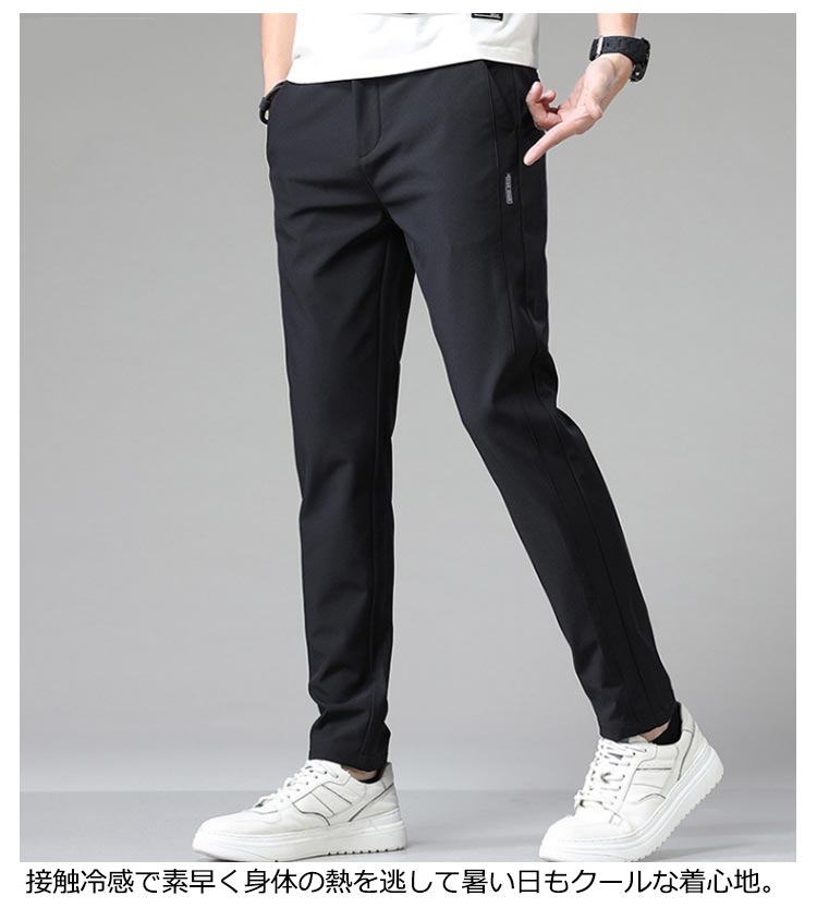 | 穿いてないみたいに軽く涼しい! 接触冷感仕様の生地が汗を吸っても素早く乾く、通気性に優れてムレ感を軽減、春夏の定番メンズパンツ カジュアルな見た目ながらも、無駄な装飾を施さないシンプルなデザイン 接触冷感で素早く身体の熱を逃して暑い日もクールな着心地。 驚くほど伸びる伸縮自在のストレッチ素材を採用! | |
