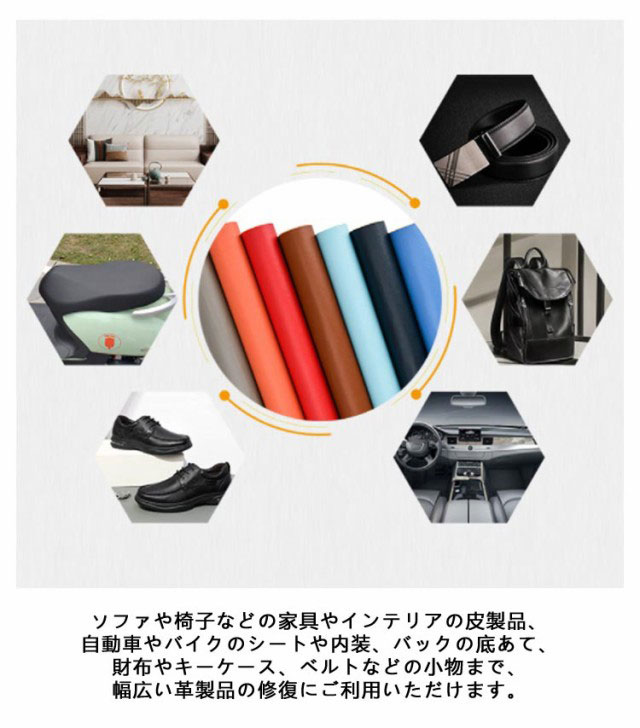 | 【合皮補修シート】【20×30cm(5枚)】【強力粘着】【全20色】 光沢感を抑えた少しマットな質感です。 柔らかく微弾性があり、防水性と耐摩耗性に優れています。 ソファや椅子などの家具やインテリアの皮製品、自動車やバイクのシートや内装、バックの底あて、財布やキーケース、ベルトなどの小物まで、幅広い革製品の修復にご利用いただけます。 好きな形に切って貼るだけだから手芸や洋裁、小物づくりなどハンドメイドにもおすすめです。 粘着シールでしっかり貼り付けできます。 PUレザーで高級感バッチリです。 手芸品や民芸品、工芸品などのDIYにもご利用いただけます。 | |