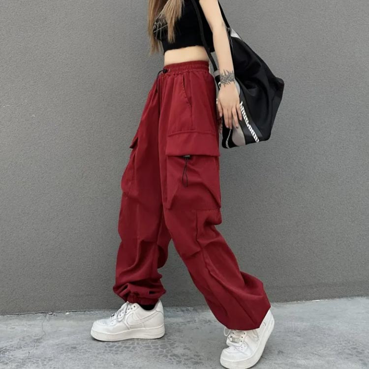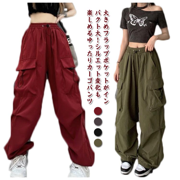 ダンスパンツ レディース カーゴパンツ ミリタリーパンツ ダンス衣装 ヒップホップ ジョガーパンツ ゆったり ルーズ ストリート カジュアルパンツ ワークパンツ 普段着 春夏秋 ボトムス 長ズボン レッド カーキ グレー ブラック 黒 赤 大きいサイズ