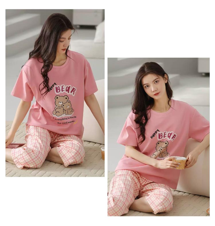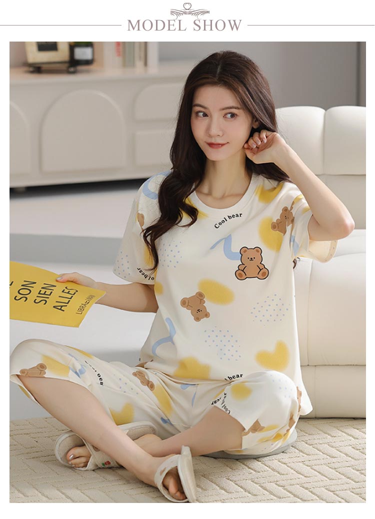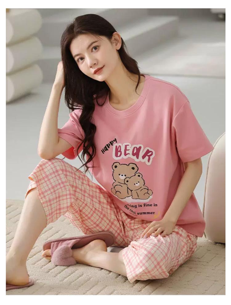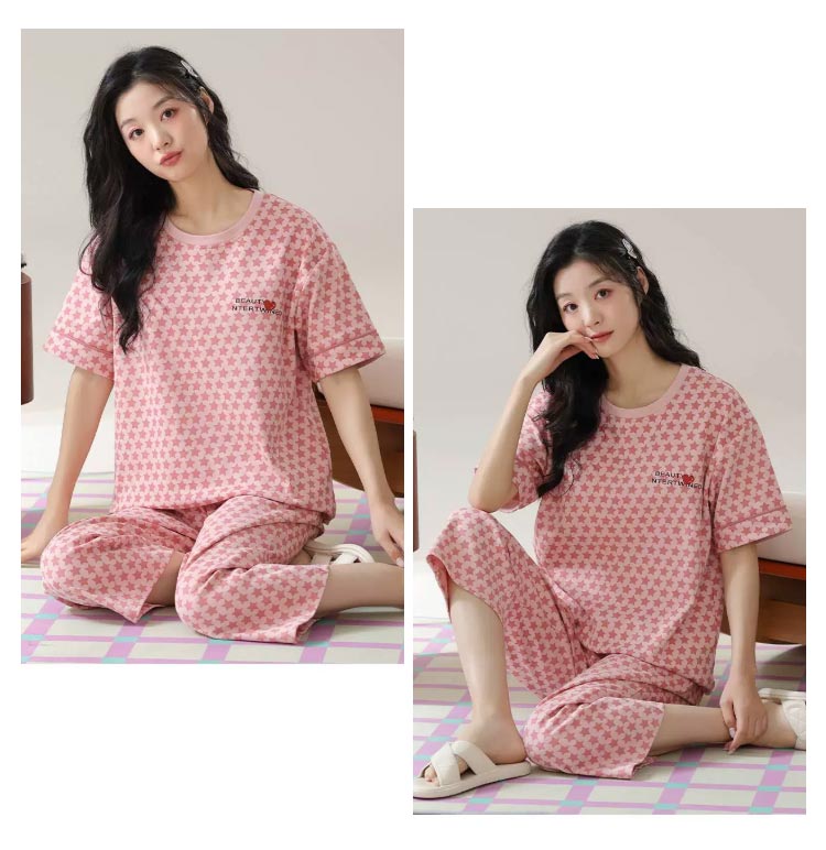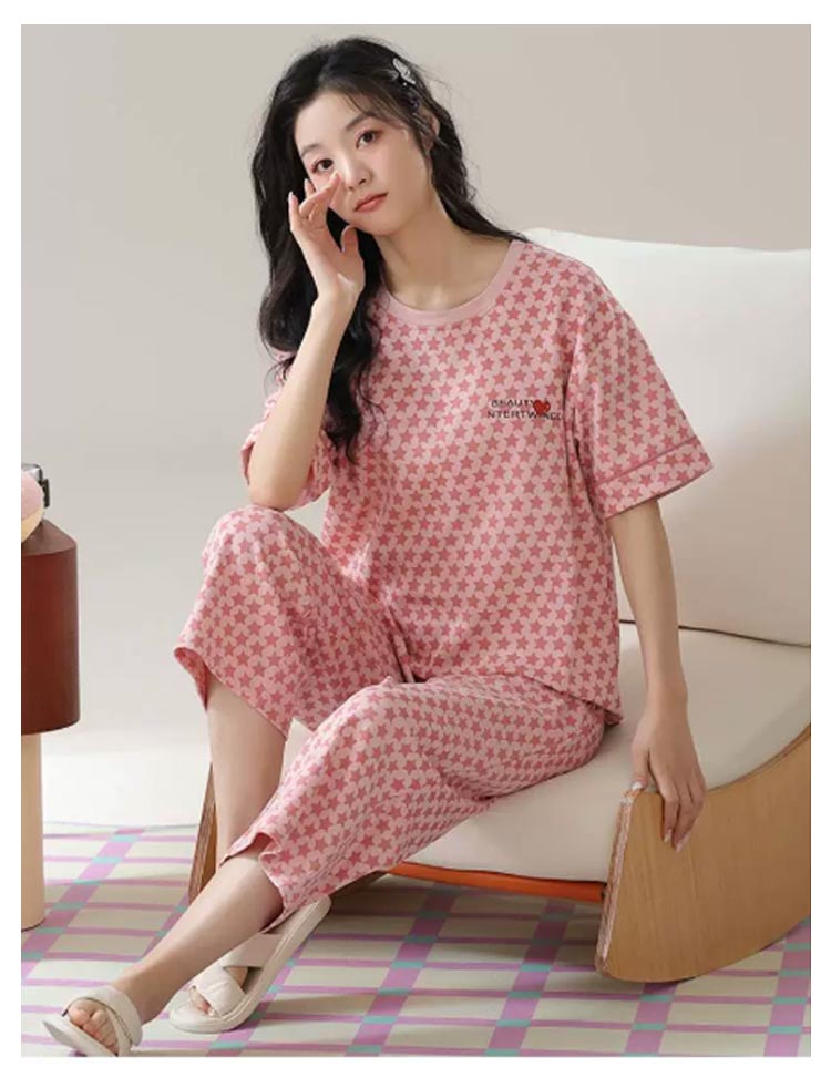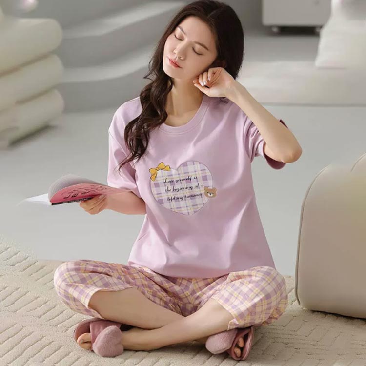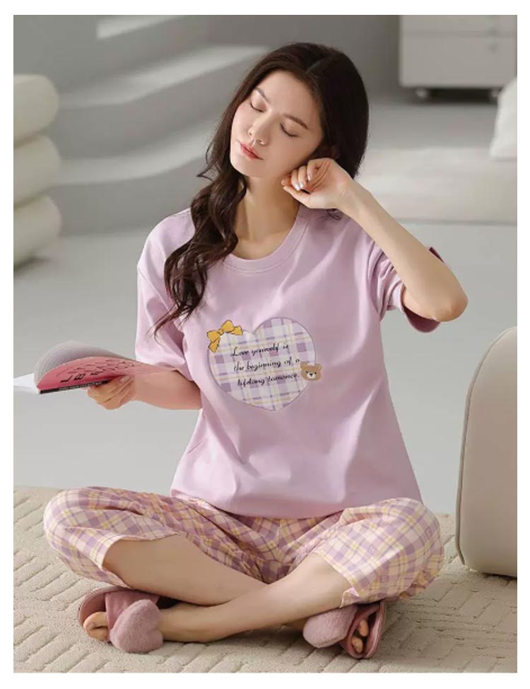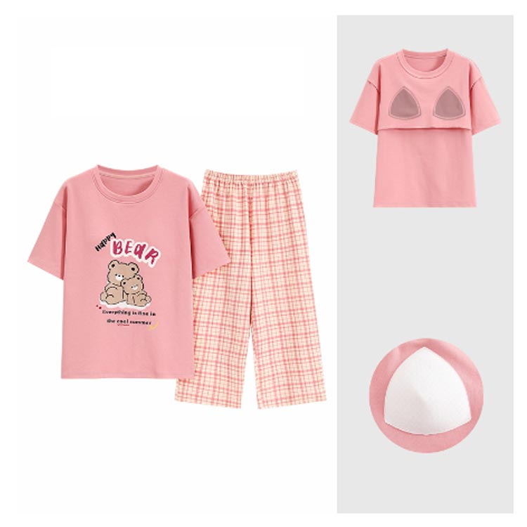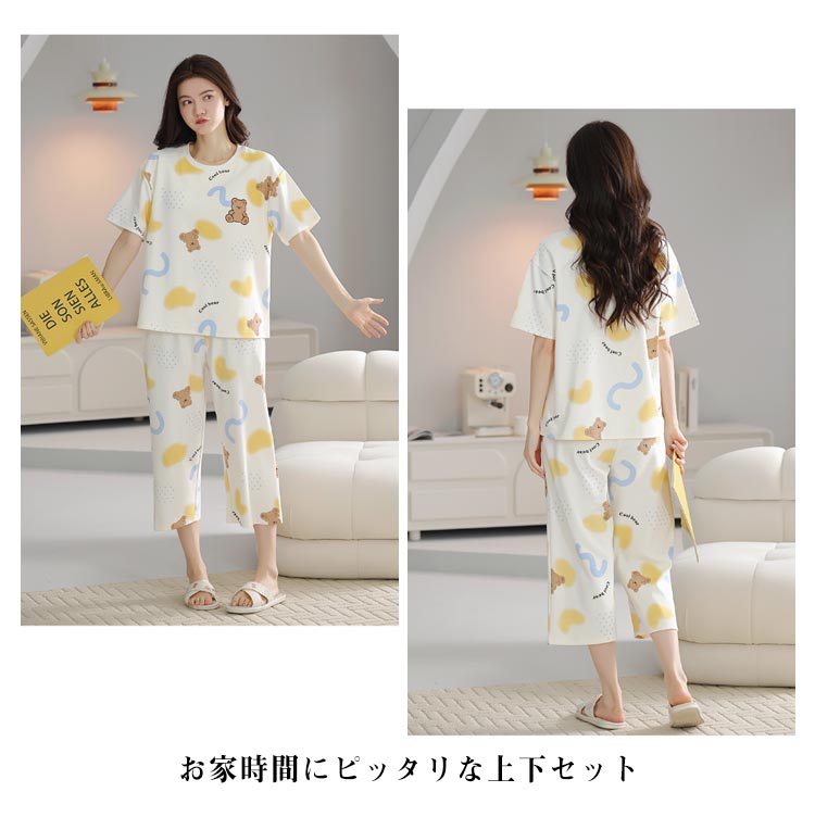 カップ付き パジャマ 上下セット レディース ルームウエア 半袖 Tシャツ 七分丈 パンツ ポケットあり 綿 コットン 薄手 部屋着 寝巻き 寝間着 ナイトウェア ブラトップ パッド付き 母の日 プレゼント 夏