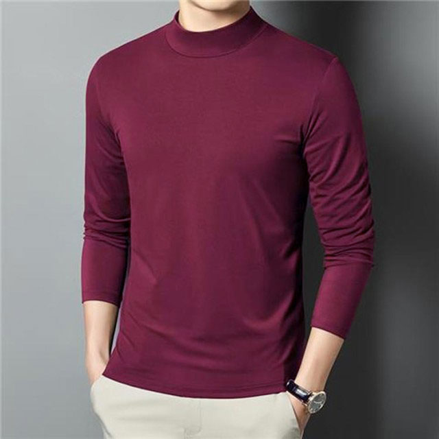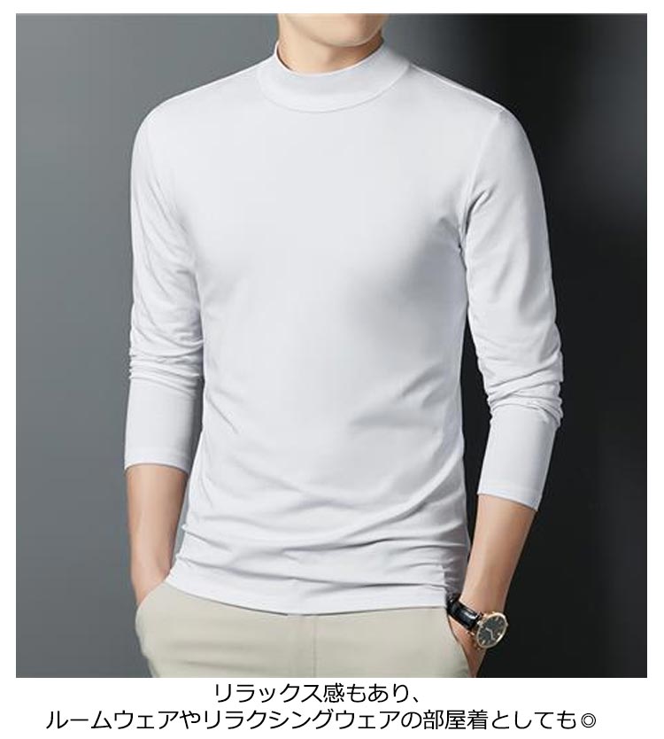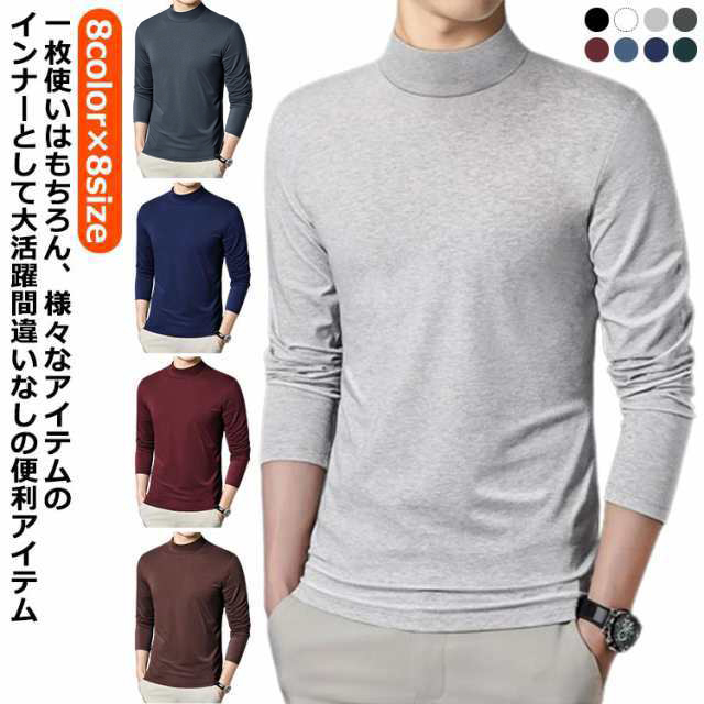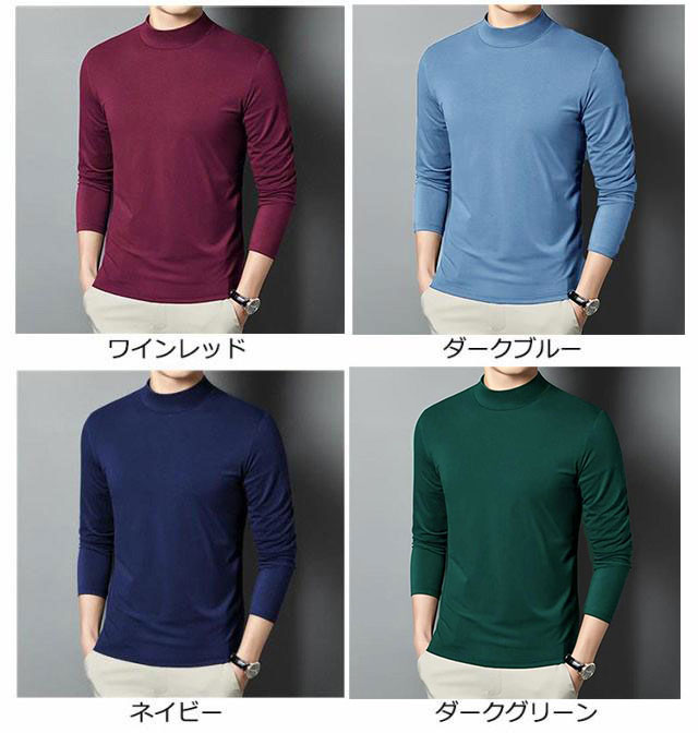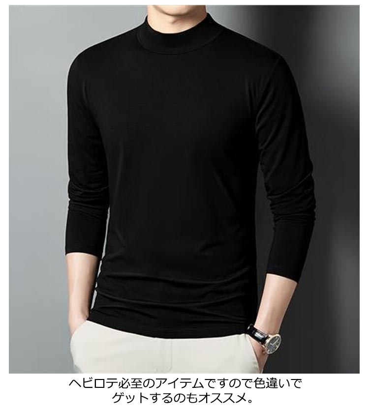 カットソー tシャツ メンズ 無地 ロンT 全8色 大きいサイズ メンズ セミハイネック トップス インナー 長袖 ストレッチ 伸縮性 スムース素材 ビジネス 通勤 普段着 レイヤード 重ね着 男性 春 秋 無地 黒 白 送料無料