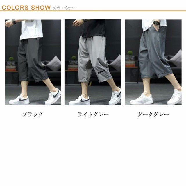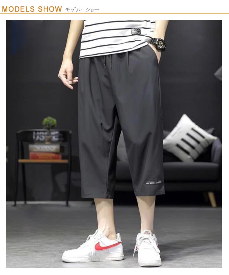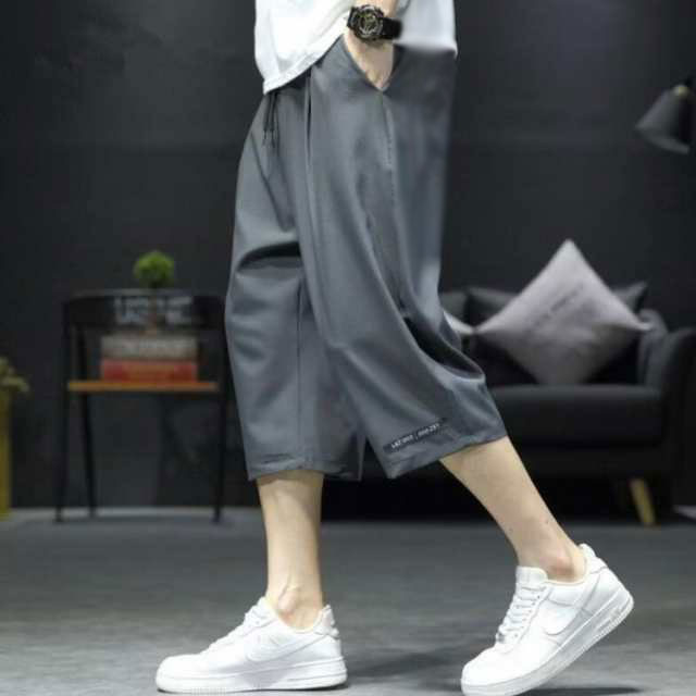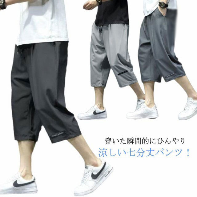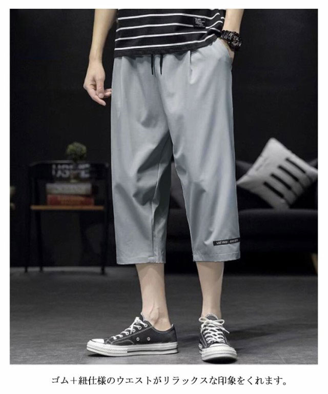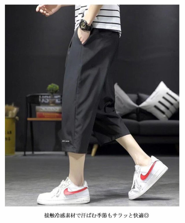 7分丈 パンツ メンズ ワイド クロップドパンツ 接触冷感 イージーパンツ 冷感 涼感 ワイドパンツ ロングパンツ 涼しい カジュアルパンツ ゆるパンツ ウエストゴム 無地 カジュアル ゆったり キレイめ お洒落 シンプル 大きいサイズ ボトムス 春 夏