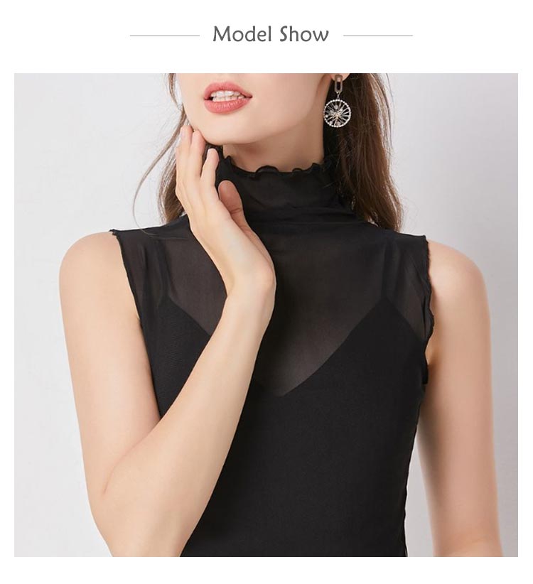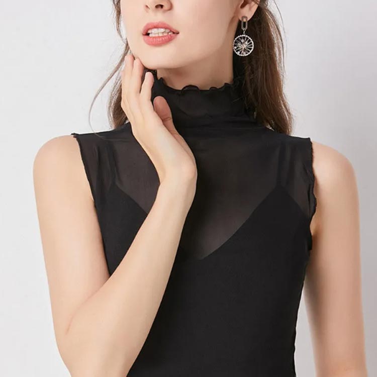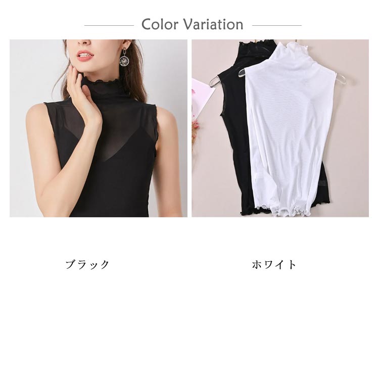| 首元はハイネックになっており、上品なフリルが施されています。 肌に優しいチュール素材を使用し、大切な首元のuv対策としても露出度調整にも しっかりしてて伸縮性もあり、締め付けもな、着心地が良いです メイン使いだけでな、インナー使いやレイヤードスタイルにも合わせやすいので幅広い着方をお楽しみください | |