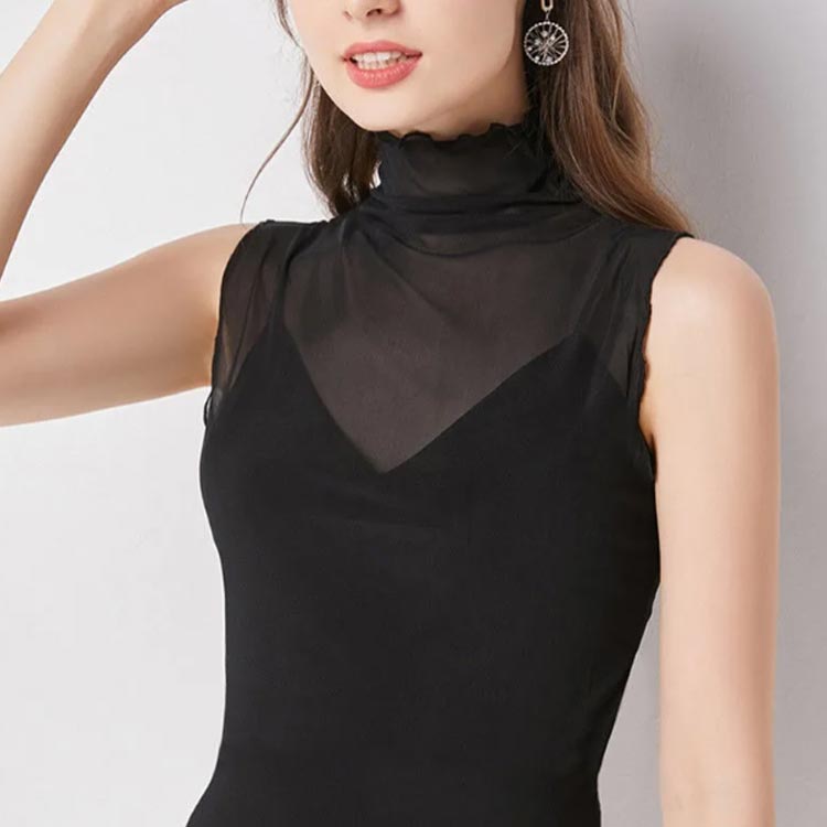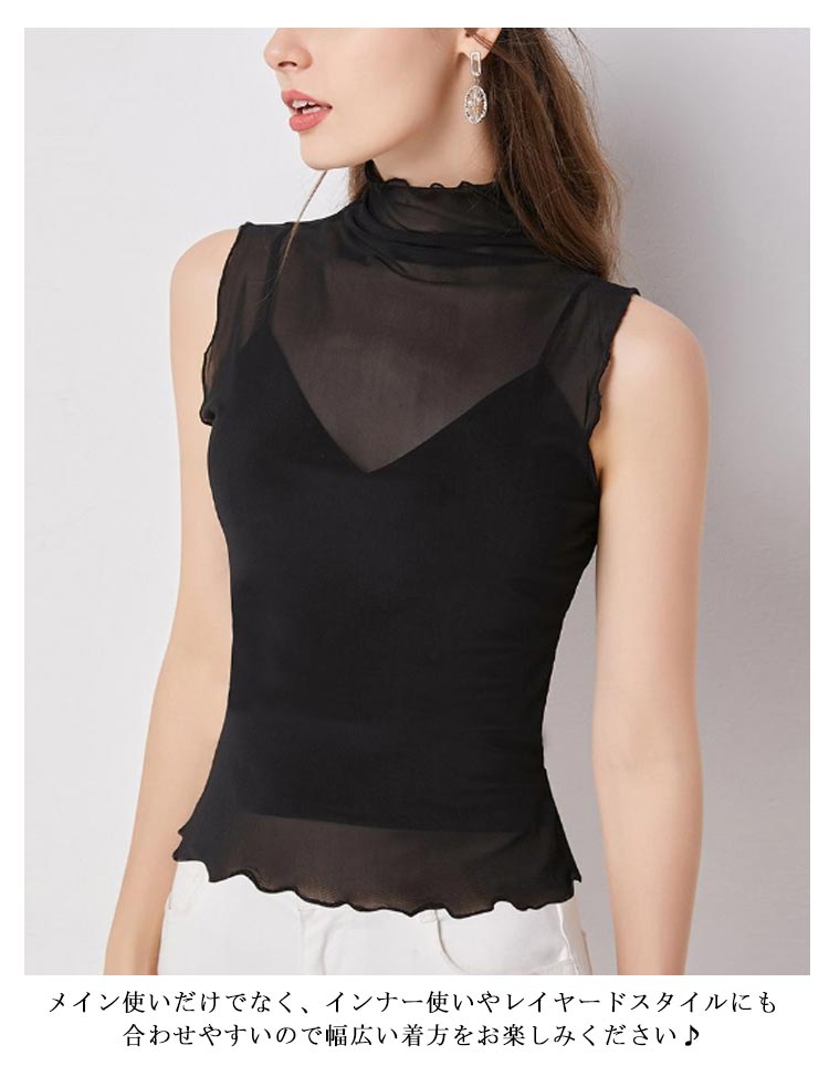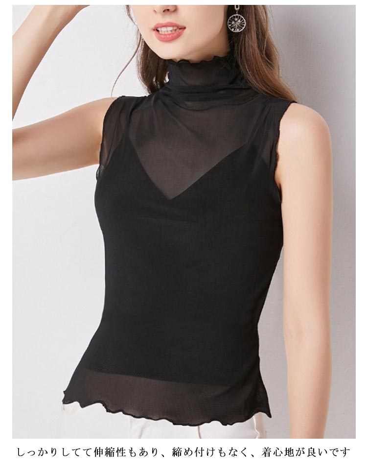 シアートップス 2枚セット ノースリーブ トップス レディース ハイネック タンクトップ インナー 透け感 薄手 Tシャツ 長袖 春夏 秋 紫外線対策 肌見せ サマー おしゃれ 重ね着 レイヤード コーデ 黒 送料無料