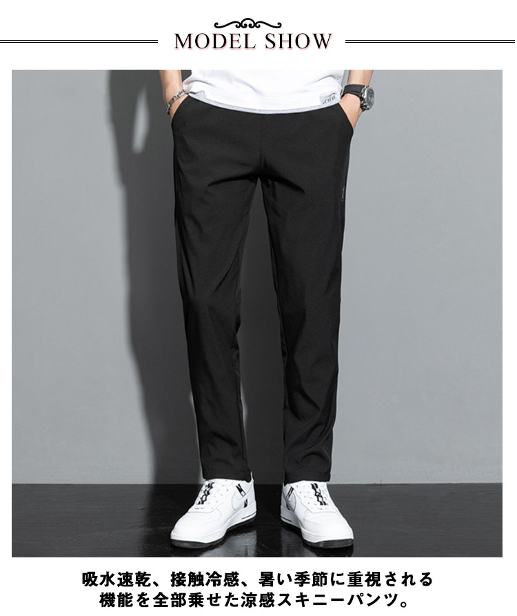 【買い得な2本セット!】【吸水速乾、接触冷感、暑い季節に重視される機能を全部乗せた涼感スキニーパンツ。】接触冷感ある生地には、快適で通気性のあるが備わっているからアクティブなシーンでも快適に穿ける1本。ウエストゴムで、はき心地も快適、着脱しやすい仕様に!汗を速く吸収、拡散して、快適なクール&ドライを持続できます。縦横に伸びるストレッチ生地を採用。普段着はもちろん、スポーツ、アウトドア、フェス、通勤、通学、ランニング・ゴルフなど、あらゆるシーンで使える万能itemです。