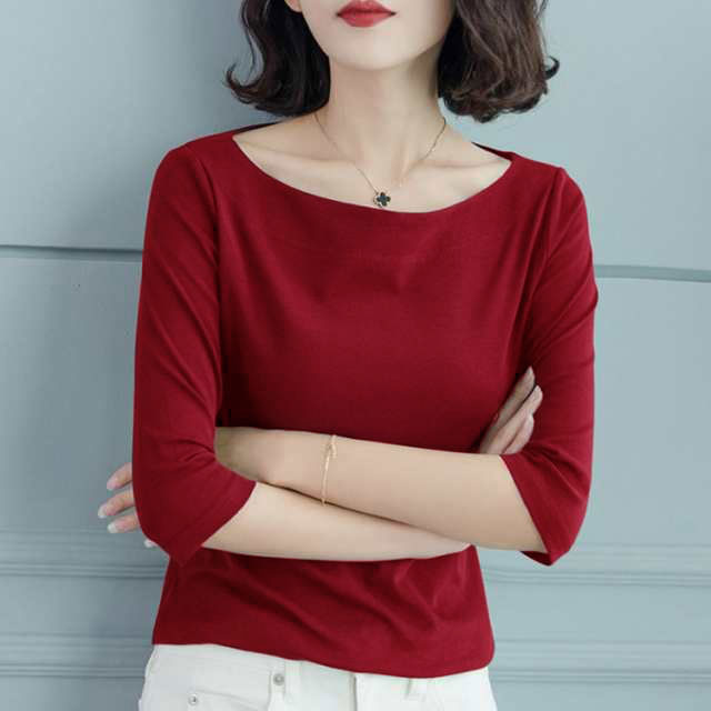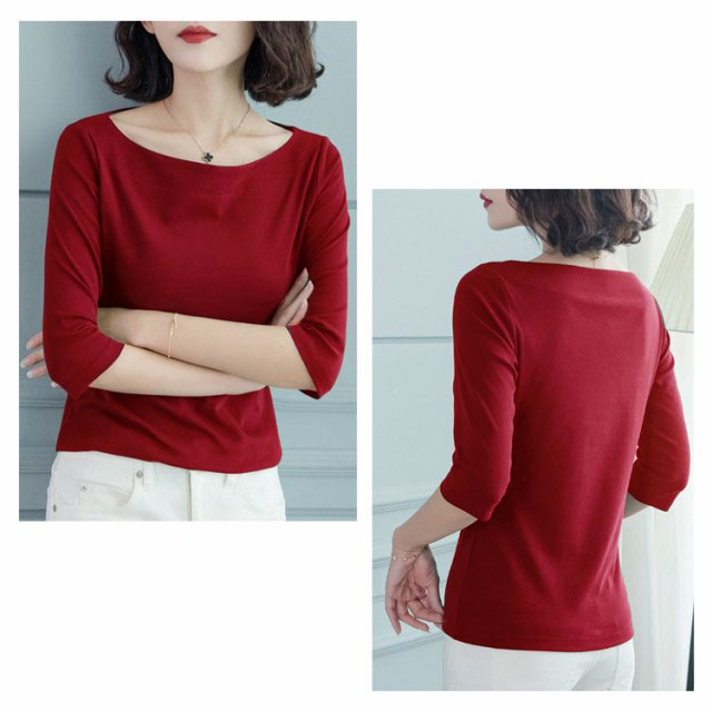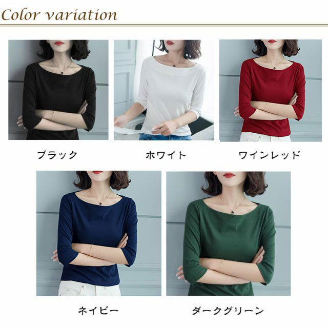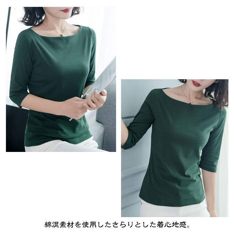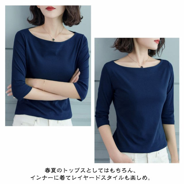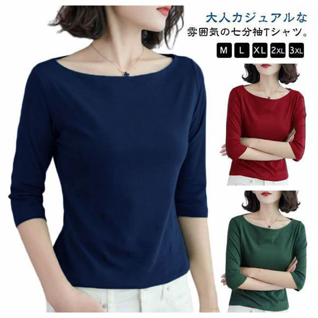 送料無料 Tシャツ レディース 七分袖 五分袖 トップス 七分袖tシャツ カットソー ボートネック tシャツ インナー プルオーバー 重ね着 カットソー 無地 シンプル オフィス カジュアル きれいめ 大きいサイズ 春 夏 送料無料