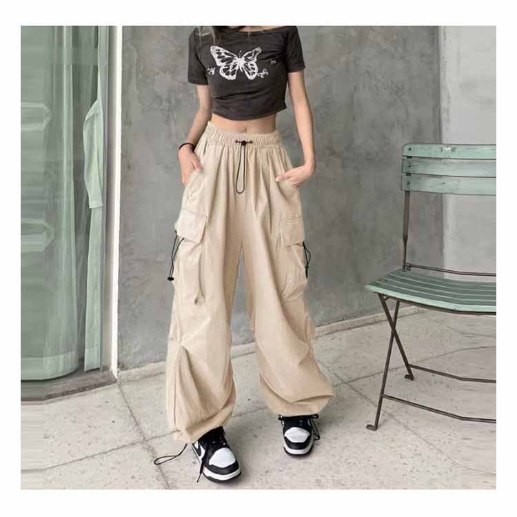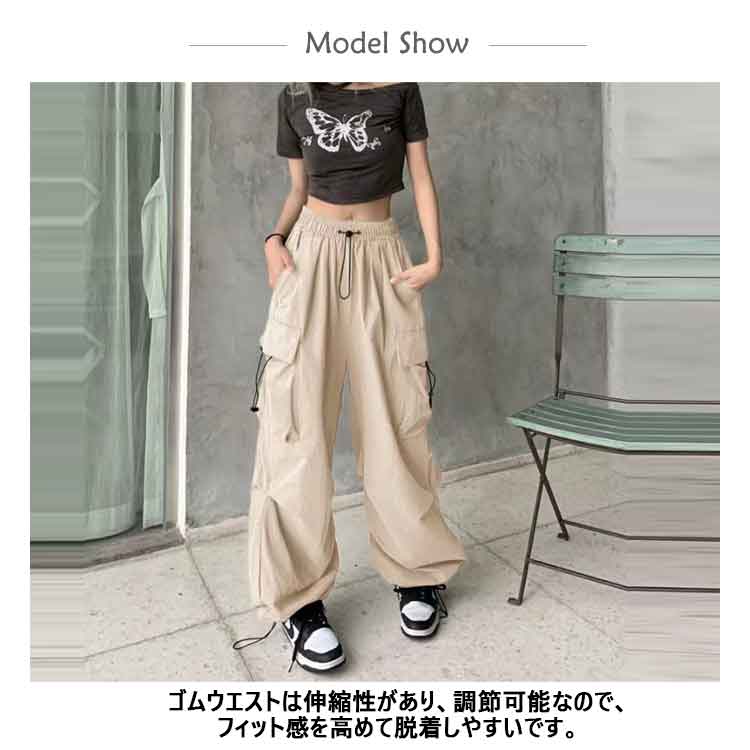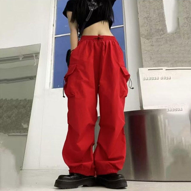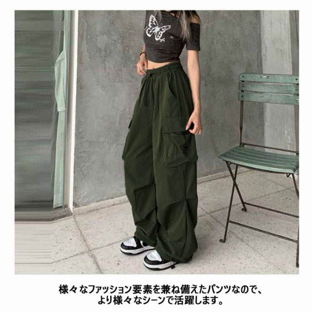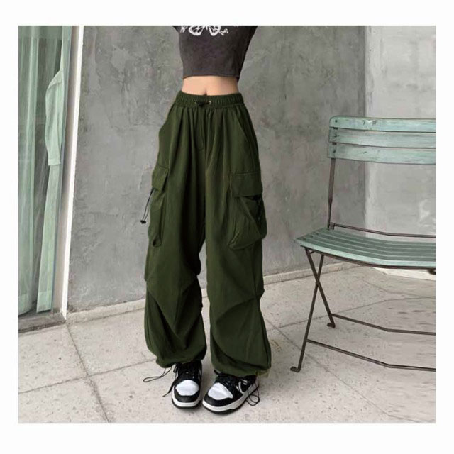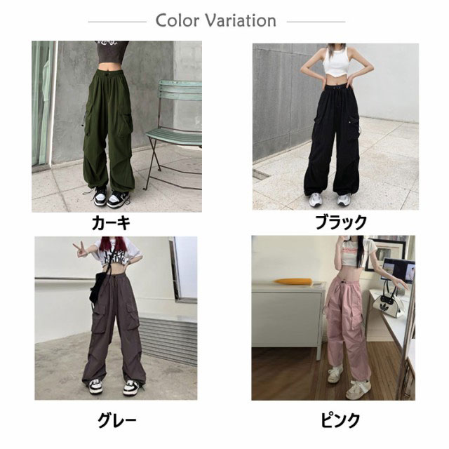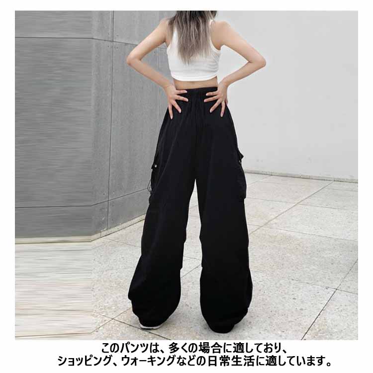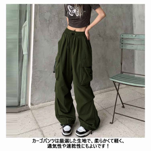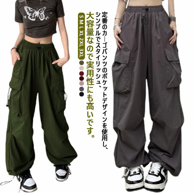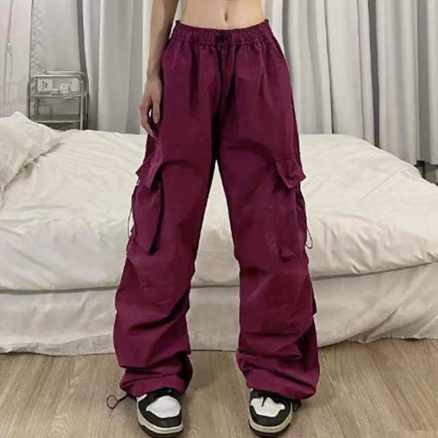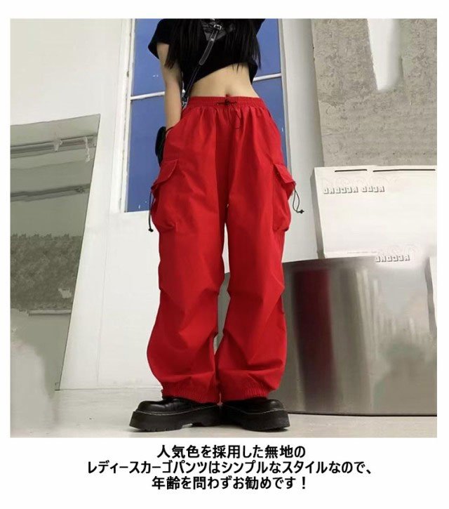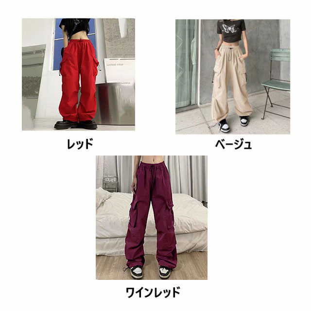 カーゴパンツ レディース ダボ 長ズボン かっこいい ダンス ヒップホップ ストリート 太め ゆったり 大きいサイズ カジュアル サイドポケット カーキ 黒 グレー ピンク 赤 ベージュ