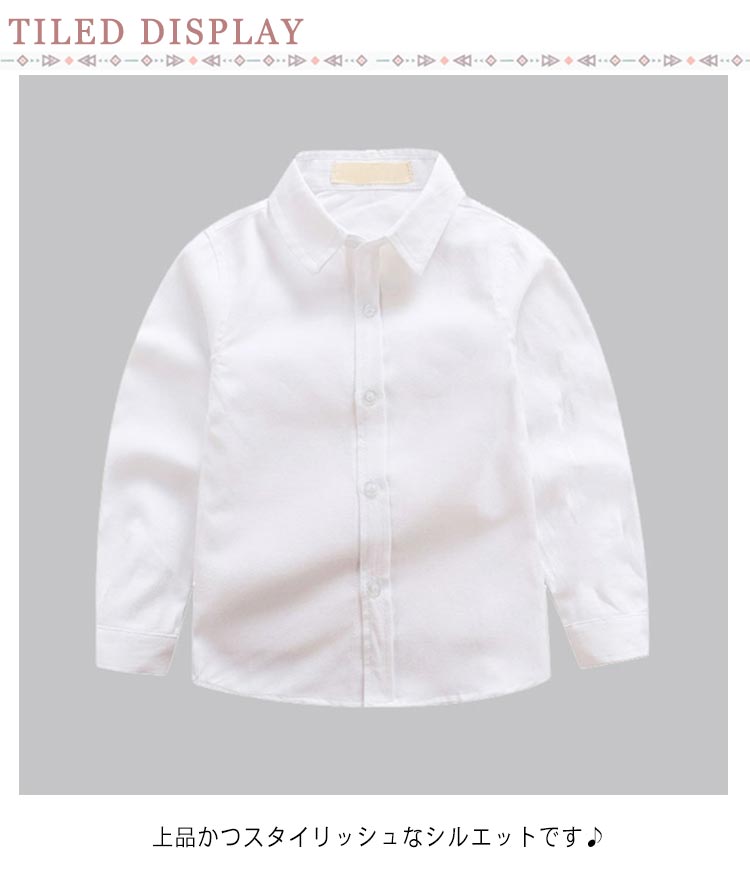 | どんなシーンにも対応できる長袖のシャツ。 上品かつスタイリッシュなシルエットです? 七五三や卒入学式、発表会、ちょっとしたお出かけや、冠婚葬祭までオールマイティーに使える。 洗い替え用のシャツとしても便利な一枚に。 形態安定、防シワ加工のシャツはお手入れ簡単です。 さらりとした綿生地は吸汗性?通気性?肌触りよく着心地も快適。 | |