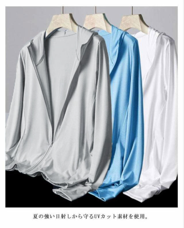 接触冷感、通気性の良いUVカットパーカー。【S-4XL】夏の強い日射しから守るUVカット素材を使用。速乾性に優れ水分を素早く拡散。清涼感ある肌触りでいつもサラッとドライに保ちます。縦横、四方に伸びるので動きやすく使い勝手も抜群!こちらは、かなり軽量に出来ているので、持ち運びも楽でシワになりにくい。鞄に入れておくだけで安心できます。お散歩・ランニング・登山・海・プール・釣り・お出かけに最適です。用途いろいろ実用性抜群!かさばらないので持ち歩きに便利です。