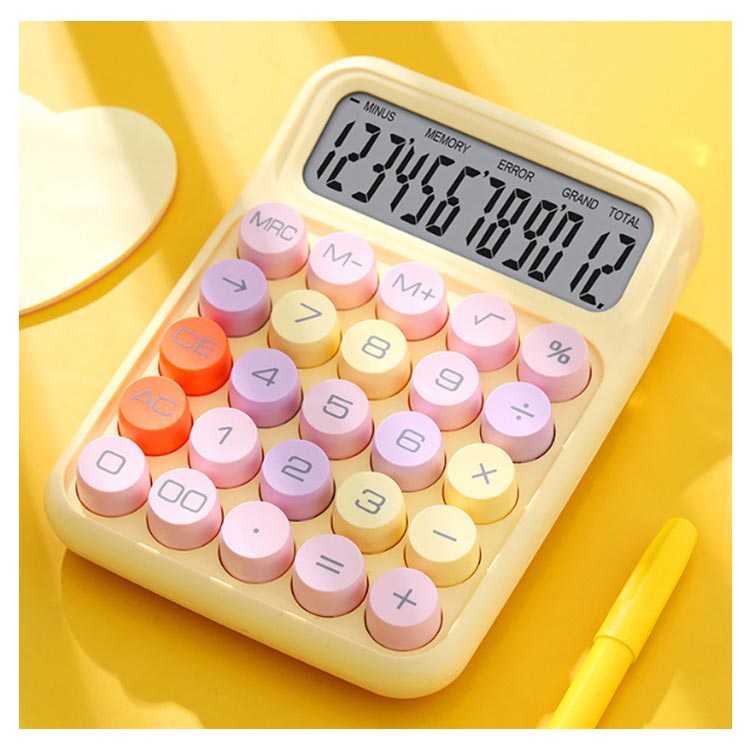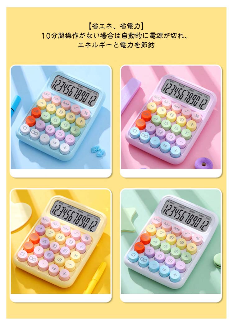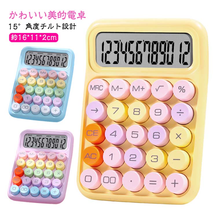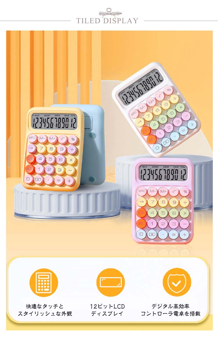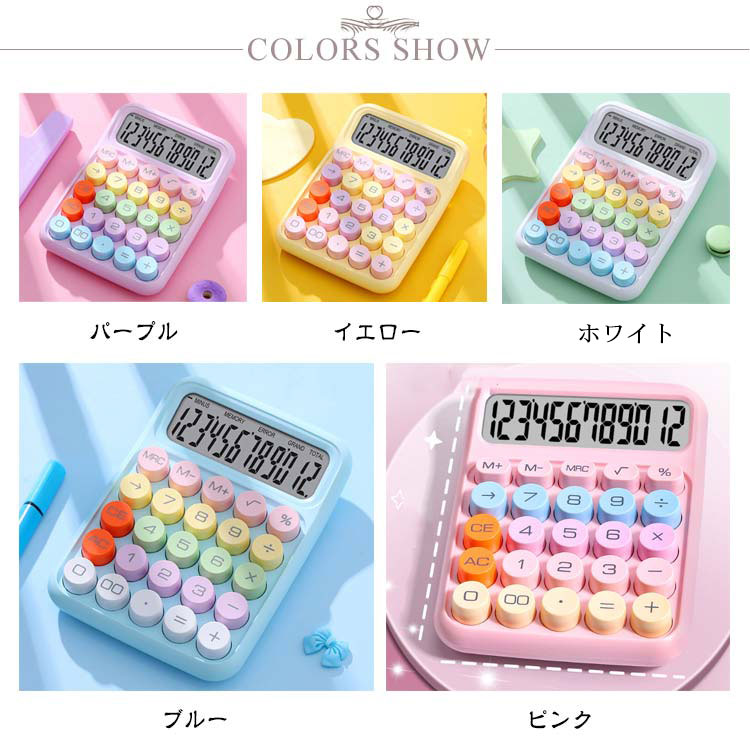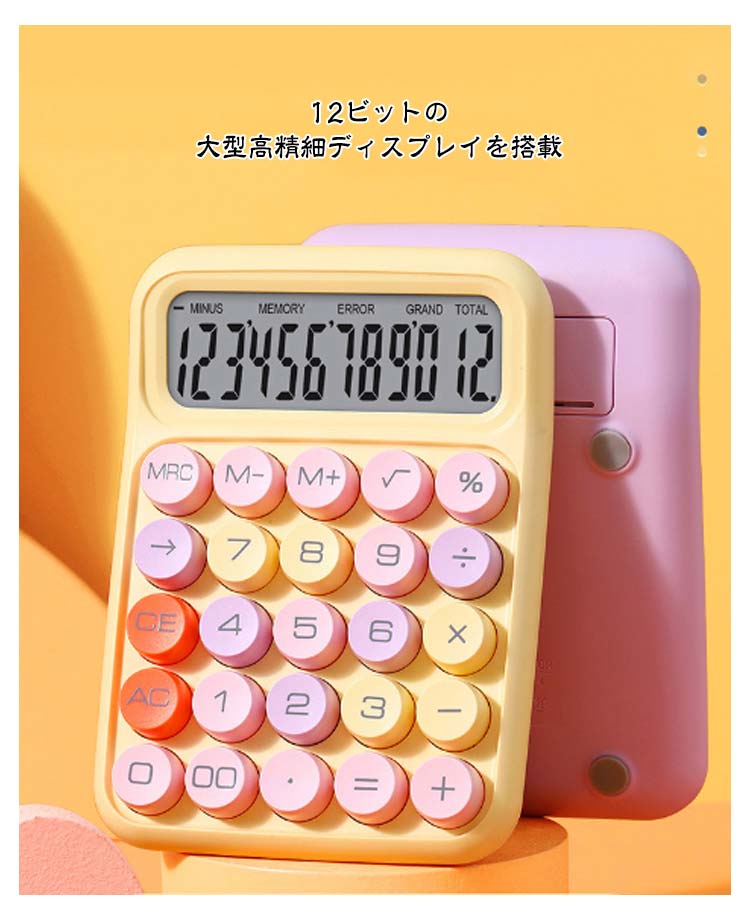 電卓 計算機 丸ボタン おしゃれ かわいい 12桁 ラウンドボタン 12ビット 大型液晶ディスプレイノンスリップ 電卓 12桁 コンパクト 持ち運び 外出 持ち運び便利 オフィス用 事務用 ホワイト ピンク イエロー ブルー パープル