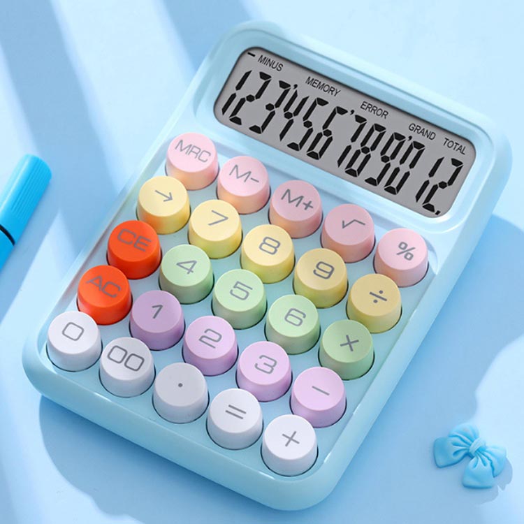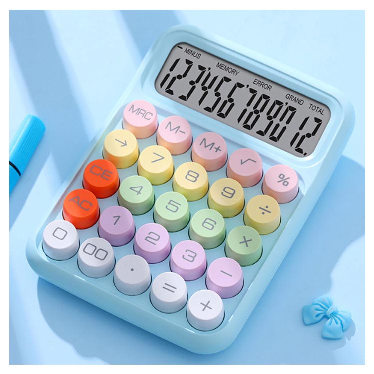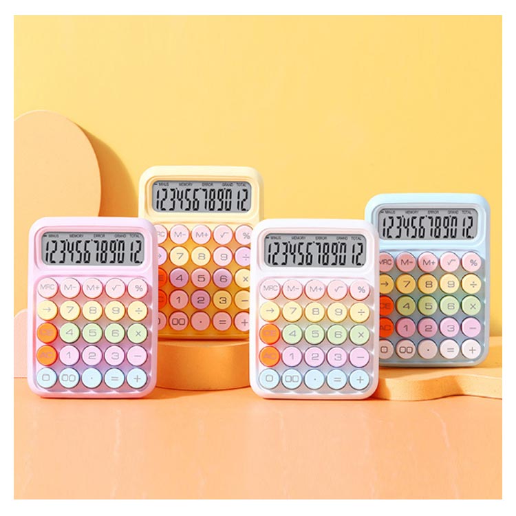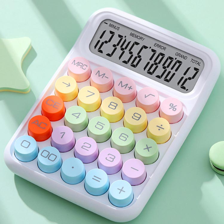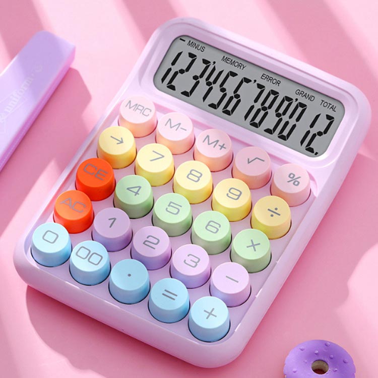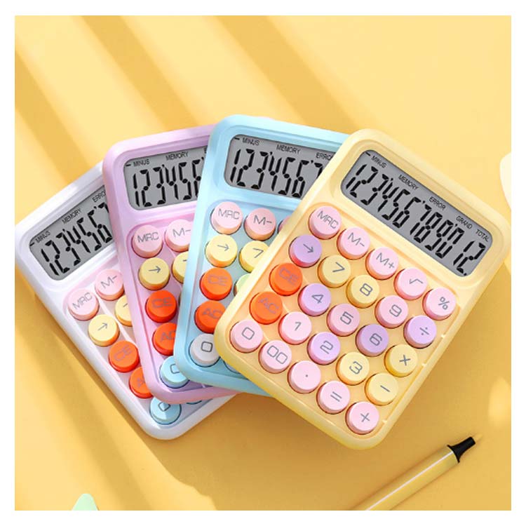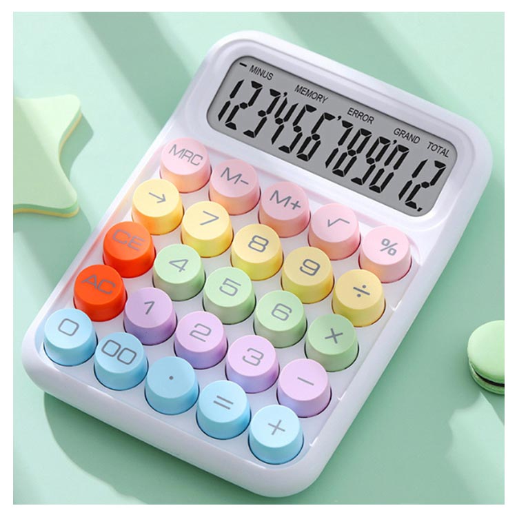 電卓 計算機 丸ボタン おしゃれ かわいい 12桁 ラウンドボタン 12ビット 大型液晶ディスプレイノンスリップ 電卓 12桁 コンパクト 持ち運び 外出 持ち運び便利 オフィス用 事務用 ホワイト ピンク イエロー ブルー パープル