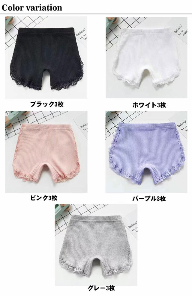 【3枚組】オーバーパンツ 1分丈 スパッツ 綿 子供 ペチパンツ レギンス スパッツ 女の子 パンツ キッズ インナーパンツ ベビー服 ストレッチ 幼稚園 アンダーパンツ レース 無地 小学生 ペチコート ショートレギンス 伸縮 通気性 夏 100-160cm