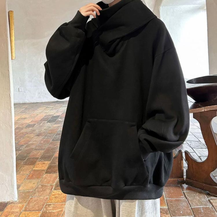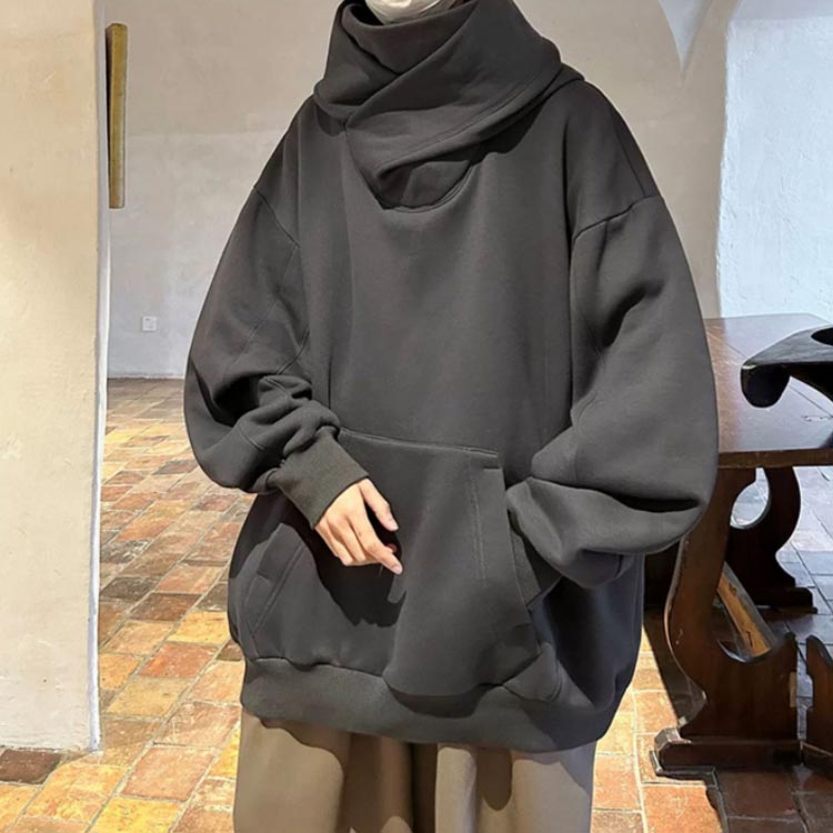 男女兼用 ボリュームネックパーカー レディース メンズ フード付きパーカー 裏起毛 防寒 保温 機能的 春 秋 冬 ハイネックパーカー スウェット スエット オーバーサイズ タートルネック ハイネック 無地 ゆったり ストリート系 ヒップホップ お兄系 個性的 モード系 原宿風