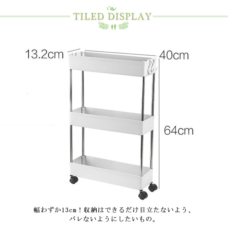 すき間収納ワゴン スリムトローリー 13cm 幅 ワゴン すき間 収納 すきま スリム 隙間 隙間ラック 収納ワゴン キャスター付き スリム収納 収納ラック コンパクト キッチン隙間収納 洗面所 キッチンワゴン ストック収納 冷蔵庫 横 冷蔵庫横