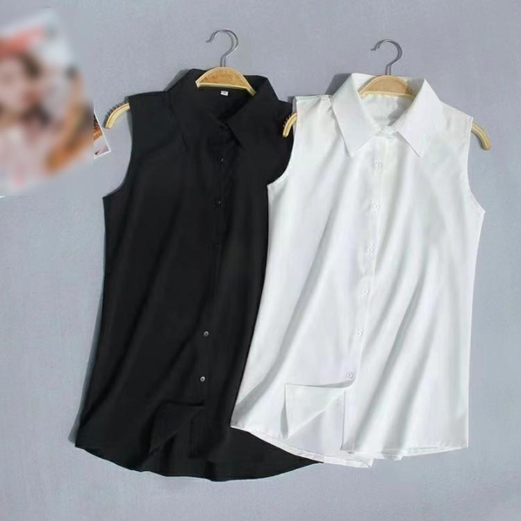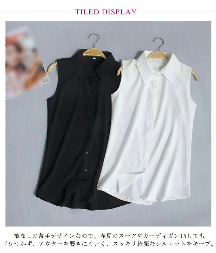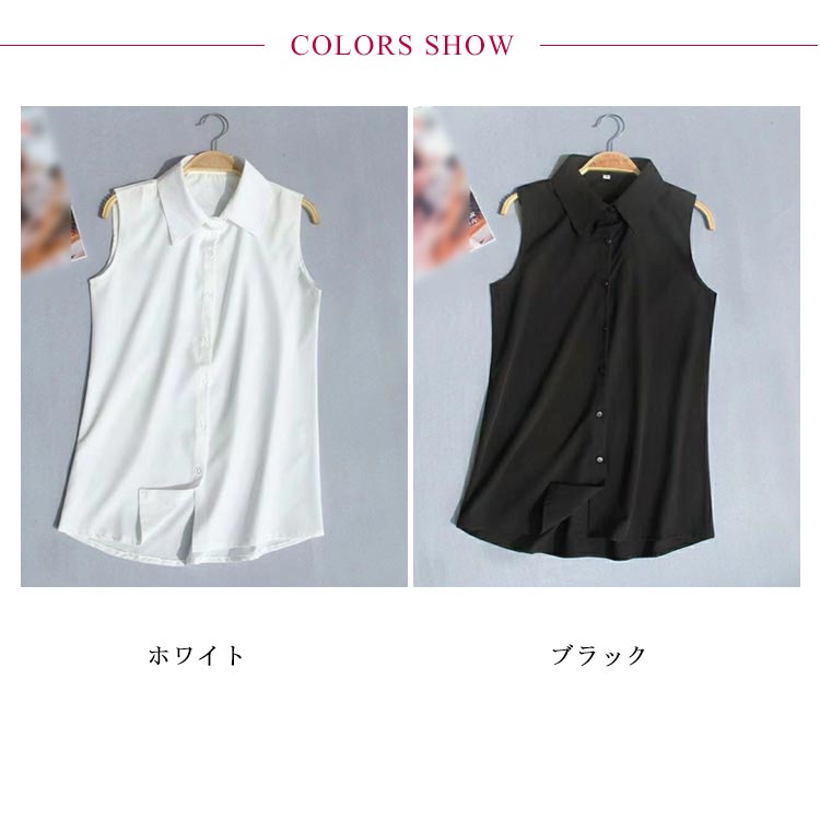 レディース ノースリーブ ブラウス シャツ 袖なし 襟付き シャツブラウス 白 黒 夏 薄手 スーツ インナー 就活 リクルート Yシャツ OL 通勤 送料無料 シフォンシャツ白シャツ ホワイトシャツ