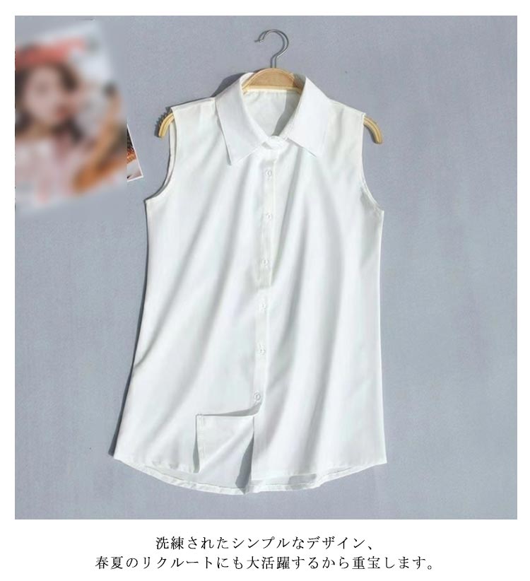 | 襟付きノースリーブシャツ? 袖なしの薄手デザインなので、春夏のスーツやカーディガンINしてもゴワつかず、アウターを響きにくいく、スッキリ綺麗なシルエットをキープ。 洗練されたシンプルなデザイン、春夏のリクルートにも大活躍するから重宝します。 さらりとした柔らかな生地、シワになりくく、洗濯okなので、お手入れかんたん。 1枚はもちろん、スーツやジャケット、ニットやパーカーなどのインナーとして一年を通してご着用いただけます。 | |