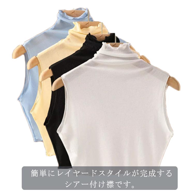 薄手 ハイネック レディース つけ襟 付け襟 夏 2点セット メッシュ 重ね着 つけえり トップス シースルー 涼しい カットソー インナー カバー 紫外線対策 ネックウォーマー 冷房対策 エアコン 冷え対策 ノースリーブ シアー レイヤード 春 通学 通勤 OL 女性 送料無料
