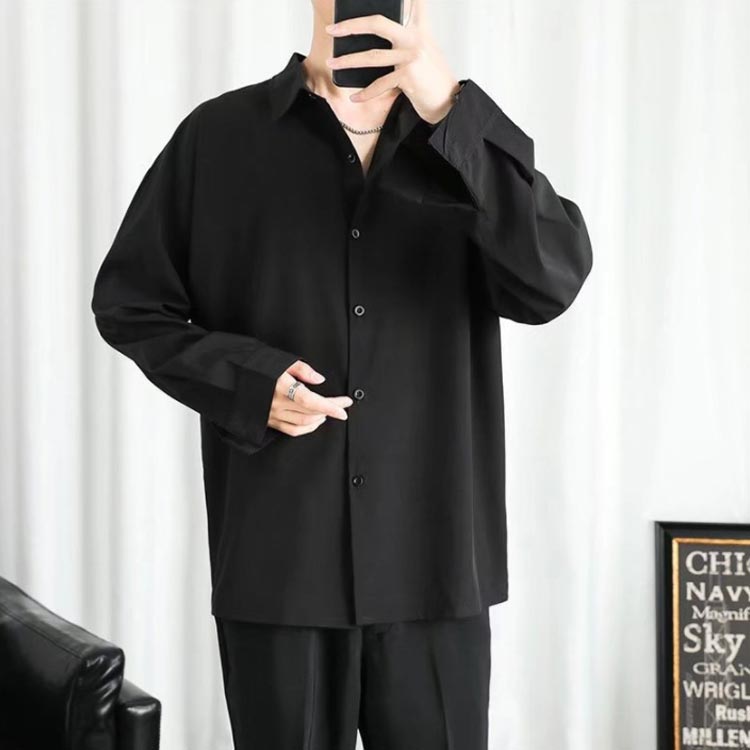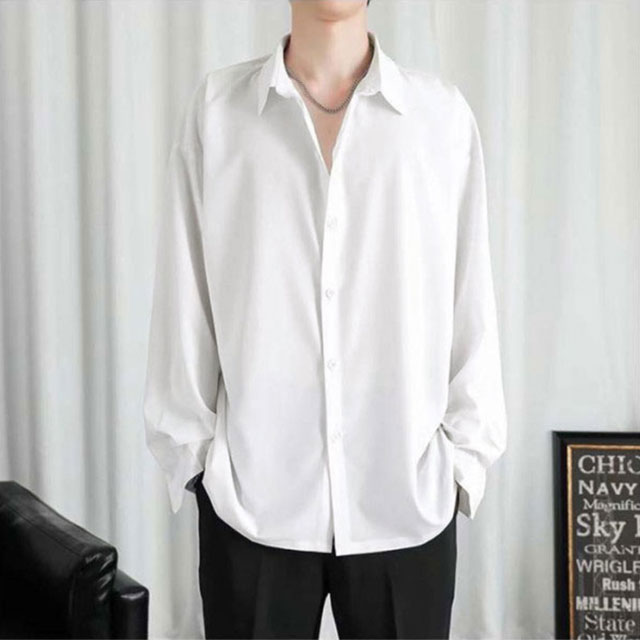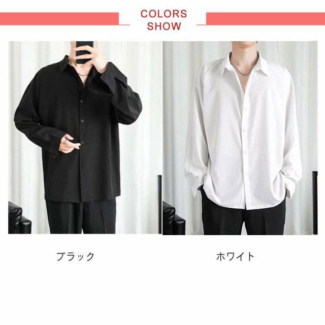 シャツ 接触冷感 涼しい メンズ 長袖 カジュアル ビジネス 夏 アイスシルク ワイシャツ 前開き 無地 白 黒 ホワイト ブラック 大きいサイズ ゆったり ひんやり おしゃれ 送料無料
