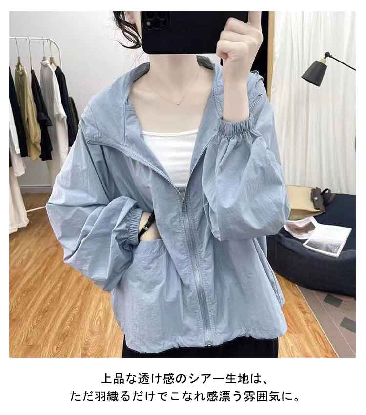 シアーブルゾン シアー パーカー UVカット シアートップス レディース 長袖 春夏 吸水速乾 紫外線対策 羽織り 涼しい 軽い 薄手 アウター マウンテンパーカー ライトアウター フード付き ゆったり ジャケット 春 夏 ショート