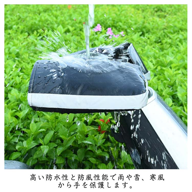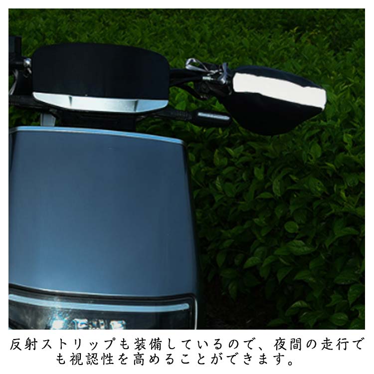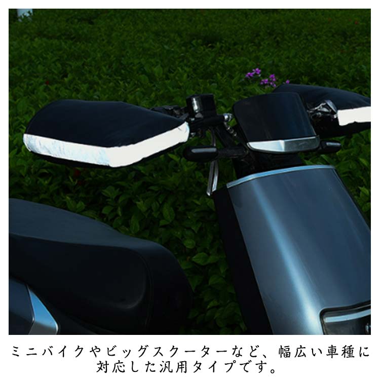 バイク用 ハンドルカバー 防水 防寒 冬用 裏起毛 左右セット 厚手 防風 反射テープ 自転車 スクーター 原付バイク 汎用 オートバイ ツーリング 通勤 通学 コンパクト 簡単装着 レイングッズ レイン カバー 雨 手首
