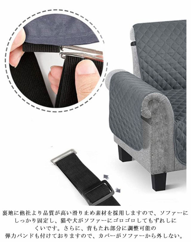 【ソファーの保護シーツ・お手入れ簡単】おしゃれなキルティングカバーはソファーを装飾する同時に、カバーの柔らかさがアップ!子供とペットの肌に優しい一方、足跡やキズから高価のソファーが保護できます。さらに犬猫の毛がつきにくいため、掃除が簡単で、洗濯機で丸洗いも可能!【滑り止め付き】裏地に他社より品質が高い滑り止め素材を採用しますので、ソファーにしっかり固定し、猫や犬がソファーにゴロゴロしてもずれしにくいです。さらに、背もたれ部分に調整可能の弾力バンドも付けておりますので、カバーがソファーから外しない。【2層の防水素材・防水機能がUP】普通のソファーカバーより、表地に防水加工を施されておるほか、プラスαとして表地の下にTPU防水素材を敷きました。防水効果が一層にアップされ、子供とペットの唾液やシミになりがちな紅茶やコーヒーなどこぼしてもすぐに染み込む恐れがありません。【天然コットン素材】中間層は天然コットン素材を用い、シーツの厚さを増やすことにより、ふわふわな座り心地を提供する同時に環境に優しいです。