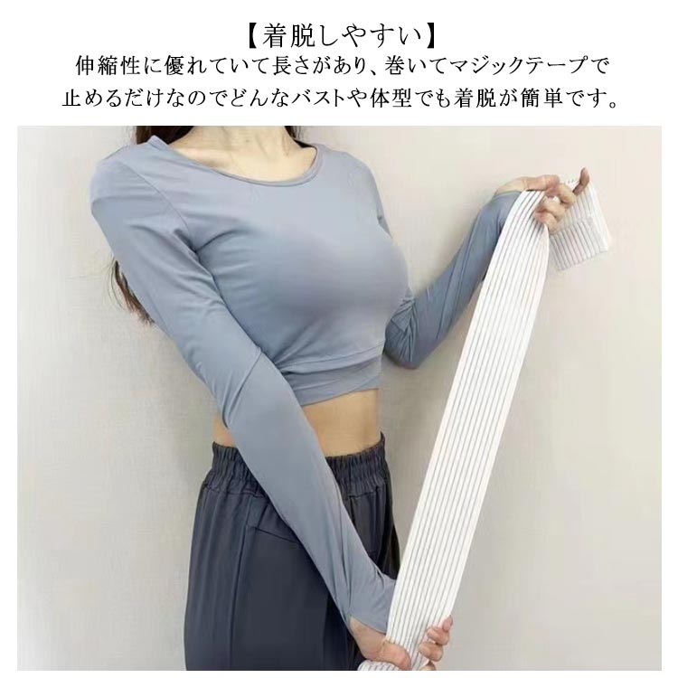 | 同色?異色2枚セット!スポーツブラより着脱?携帯便利なバストサポートバンド 【着脱しやすい】伸縮性に優れていて長さがあり、巻いてマジックテープで止めるだけなのでどんなバストや体型でも着脱が簡単です。 【バストの型崩れ予防】胸を根元から包み込んで固定することで胸の揺れを防ぎ、胸の変形を防ぎます。 【ノンワイヤーで快適】ノンワイヤーなのでフィット感がよく、揺れによるバストの痛み、装着時のストレスを軽減します。 【軽量でコンパクト】超軽量なので旅先や出張時にも携帯しやすい。 【シーンを選ばず使える】ヨガ、スポーツ、ウォーキング時などあらゆるシーンでアクティブのアイテムです。 | |