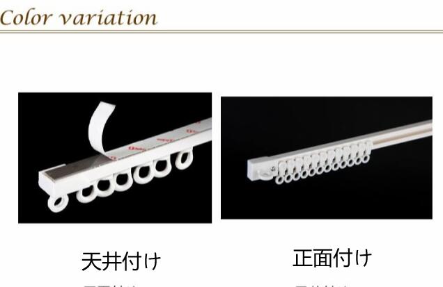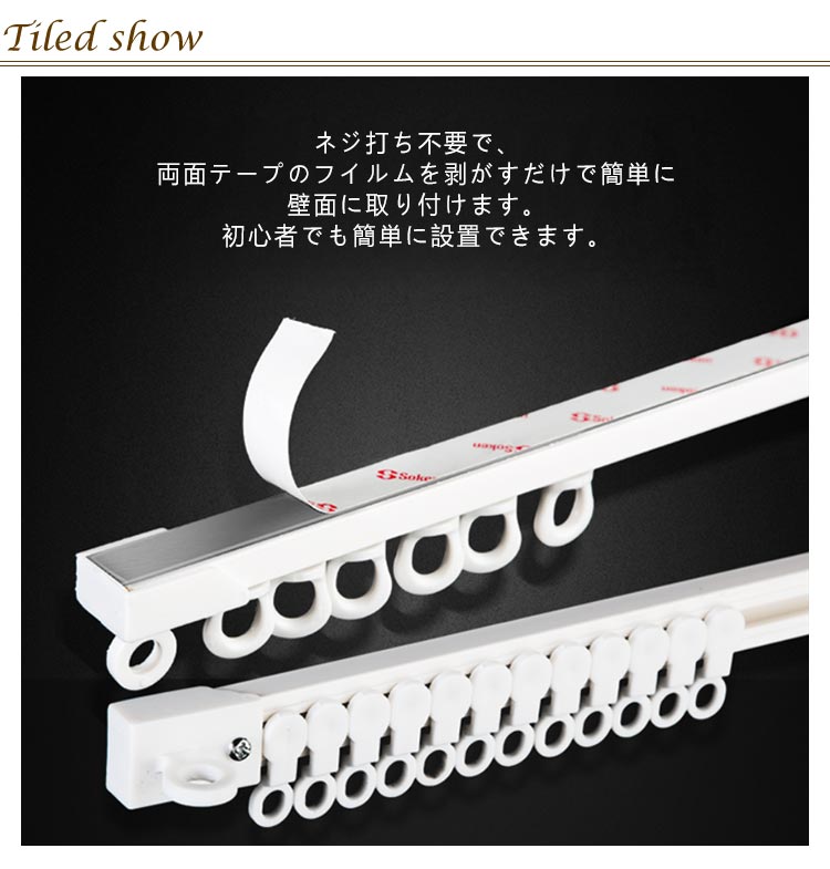| 「正面付けタイプ」と「天井付けタイプ」の2種類があり、ご自由にお選びいただけます。 ネジ打ち不要で、両面テープのフイルムを剥がすだけで簡単に壁面に取り付けます。初心者でも簡単に設置できます。 一本の長さは50cmで、6本入りセットになります。自由にカートすることもでき、お好みの長さに調節できます。 カーテンを開閉する際の音が小さいです。開け閉めしやすく居心地のいい空間になります。 ネジ穴を開ける必要がなく、賃貸や穴を開けることができない場所でも安心して取付け出来ます。 窓枠だけでなく、階段やお部屋の間仕切りにもピッタリ!場所を選ばずお好きなところに、パッと簡単に設置できます。 シンプル、スタイリッシュデザインで、オシャレな印象を演出します。二段ベッド、出窓、小窓、間の仕切り、本棚等にお使いいただけます。 | |