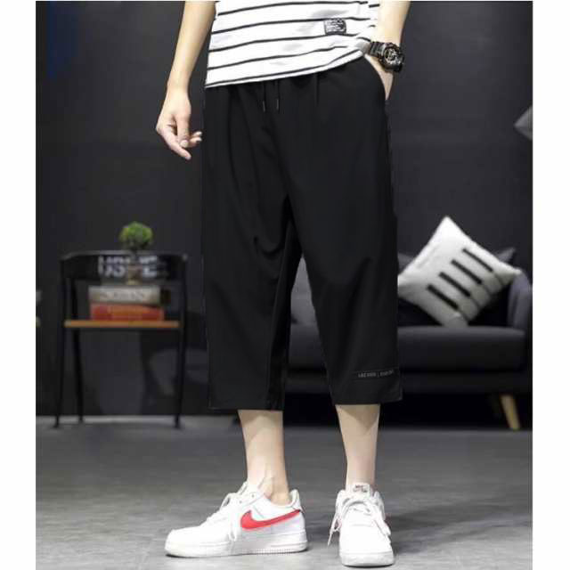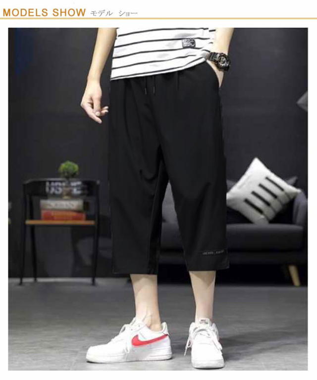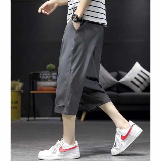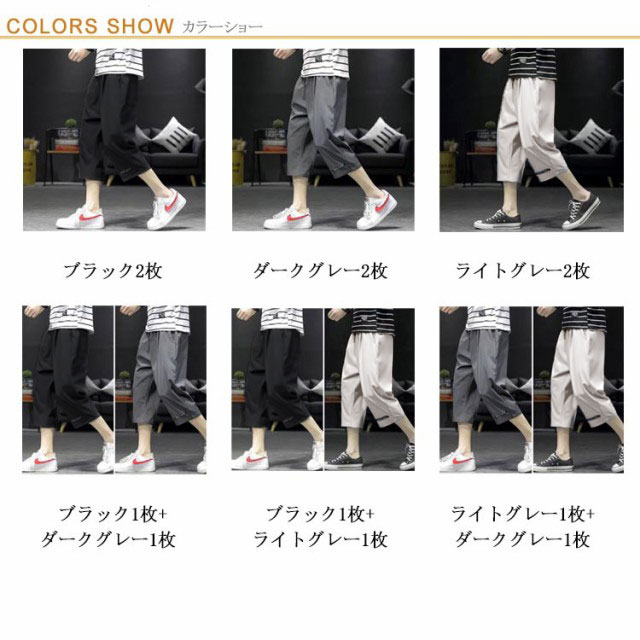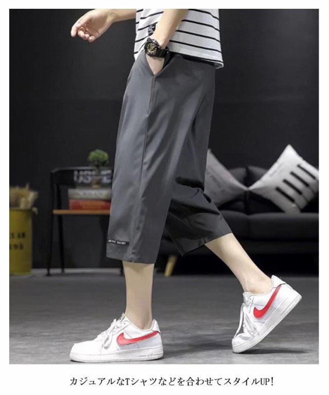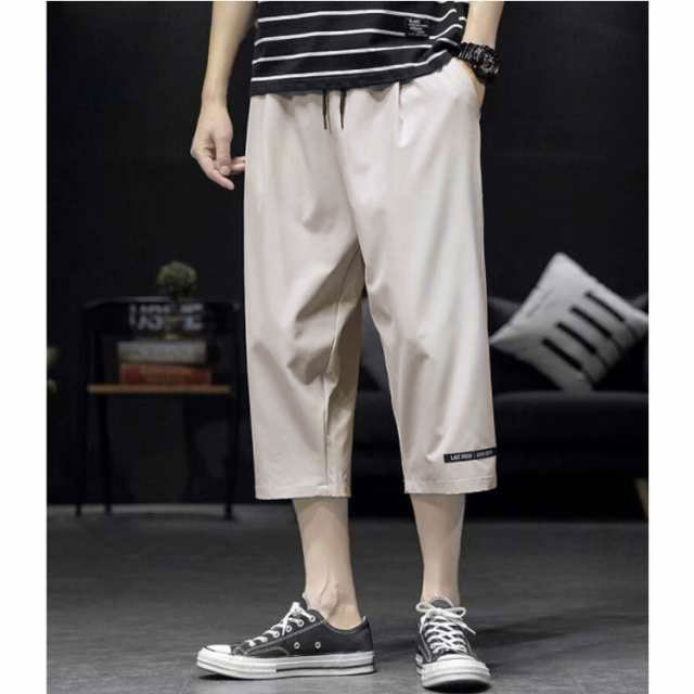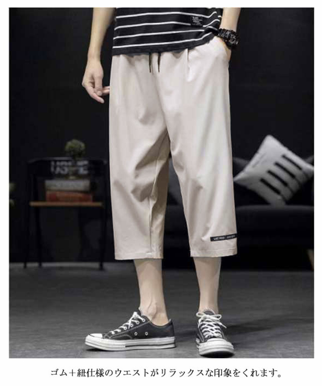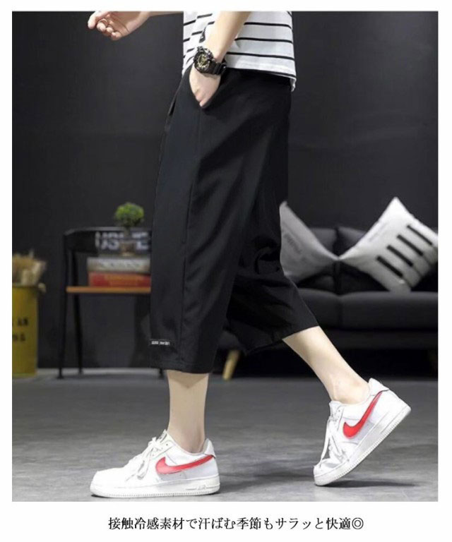 7分丈 パンツ メンズ ワイド クロップドパンツ 2枚セット 接触冷感 イージーパンツ 冷感 涼感 ワイドパンツ ロングパンツ 涼しい カジュアルパンツ ゆるパンツ ウエストゴム 無地 カジュアル ゆったり キレイめ お洒落 シンプル 大きいサイズ ボトムス 春 夏