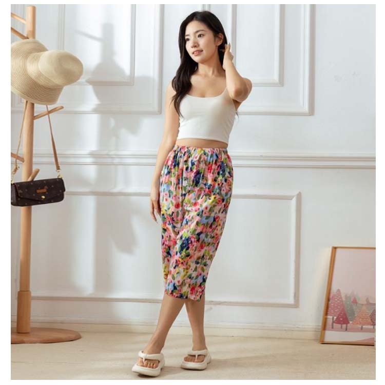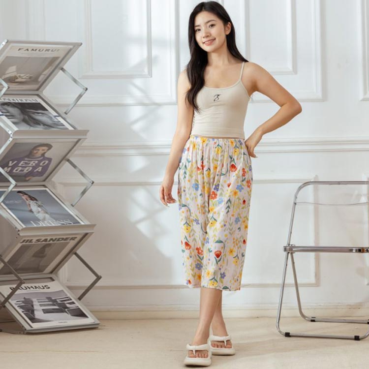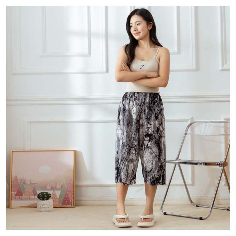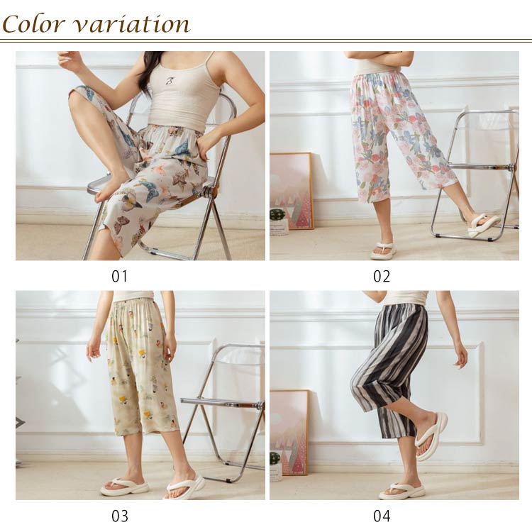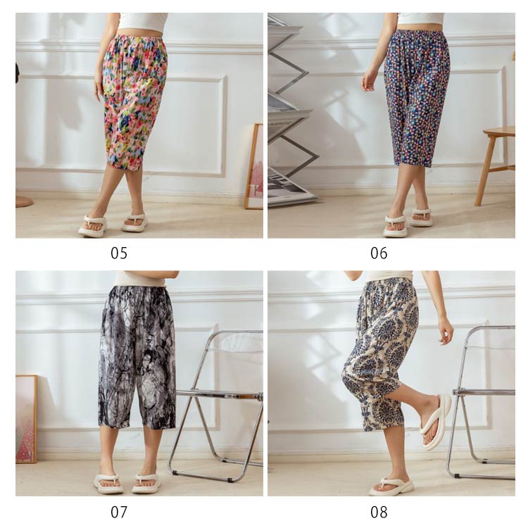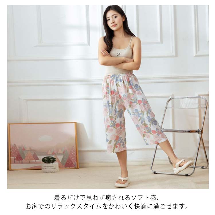 パジャマ ルームパンツ レディース ボトムス リラックスパンツ 7分丈 総柄 春夏 ステテコ 薄手 ワイドパンツ カジュアル ナイトウェア ウェストゴム サラサラ 夏パンツ ゆったり 肌に優しい 伸縮性 部屋着