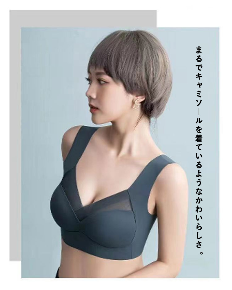 | バストが大きくて太って見える?? 人の目が気になる??などなど??? 人からは羨ましがられるかもしれないけど、悩みも多いグラマーバストさん。 そんなお悩みを解決する為に出来た「スマートバストブラ」。 大きな胸を小さく見せて、着痩せしてくれる理想的なブラです! ノンワイヤーでストレスフリーなのにしっかりハミ肉をキャッチ! 谷間を隠すデザインなので胸元のチラ見えOK。まるでキャミソールを着ているようなかわいらしさ。 | |