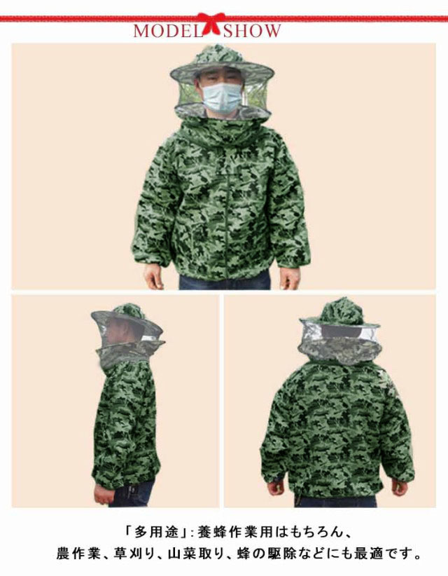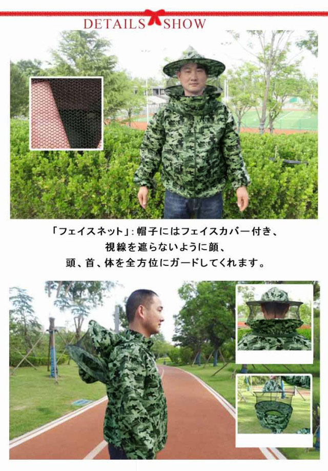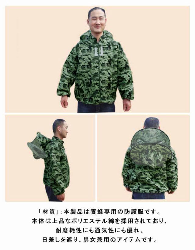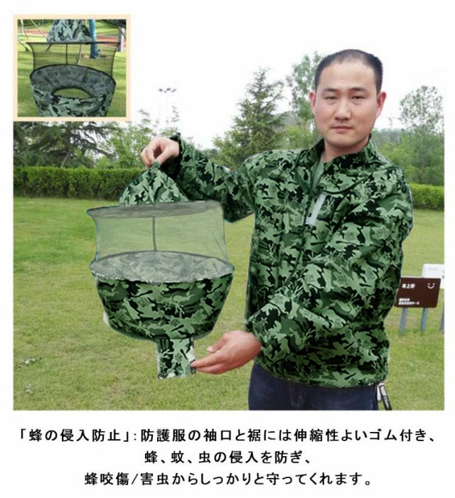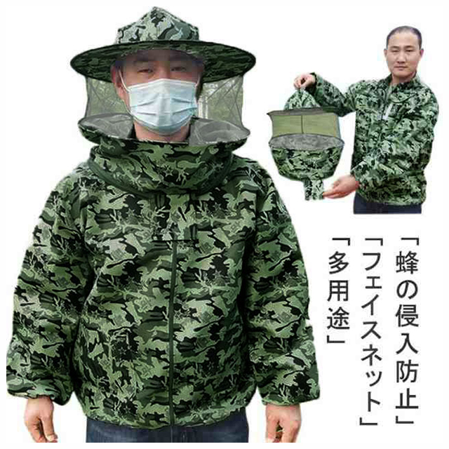 ミツバチ服 養蜂用 防護服 上着式 帽子つき フェイスネット 防虫服 養蜂器具 アウトドア ガーデニング 農作業 草刈り 虫よけ 作業服 日よけ 通気性 軽量 ハチ防護服 送料無料