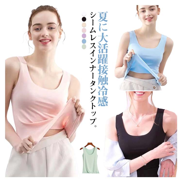 3枚セット!インナー 黒 薄手 肌着 レディース スクエアネック シームレス フィット 接触冷感 タンクトップ 吸汗 速乾 下着 フィット インナー タンク ブラ紐隠し 大きいサイズ ストレッチ ひんやり 白 ピンク タンクトップ 送料無料