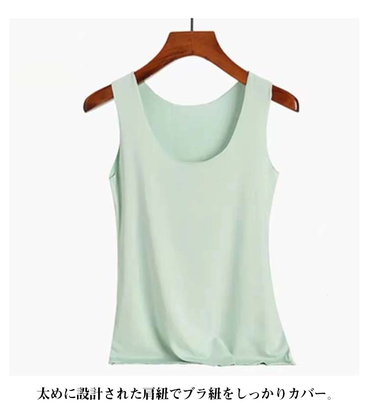 夏に大活躍接触冷感シームレスインナータンクトップ。サラッとした薄手の生地で通気性が良く、縫い目のないシームレス仕様でストレスのない抜群の穿き心地。縫い目のない仕様なので、ストレスフリーな着心地◎着ていることを忘れてしまうほど柔らかな肌触りがやみつきに。太めに設計された肩紐でブラ紐をしっかりカバー。