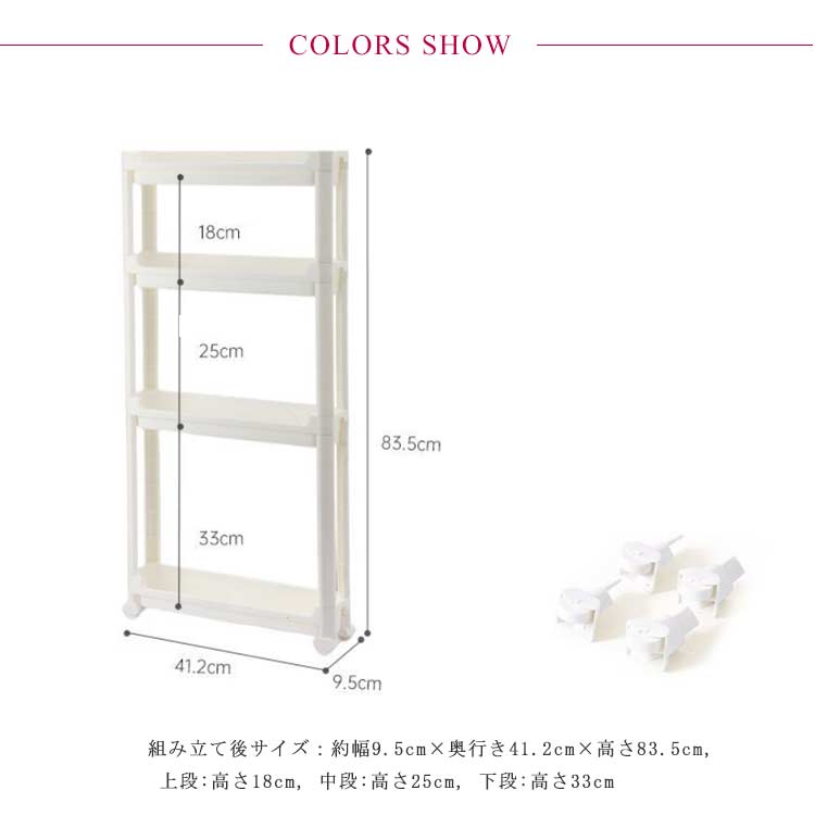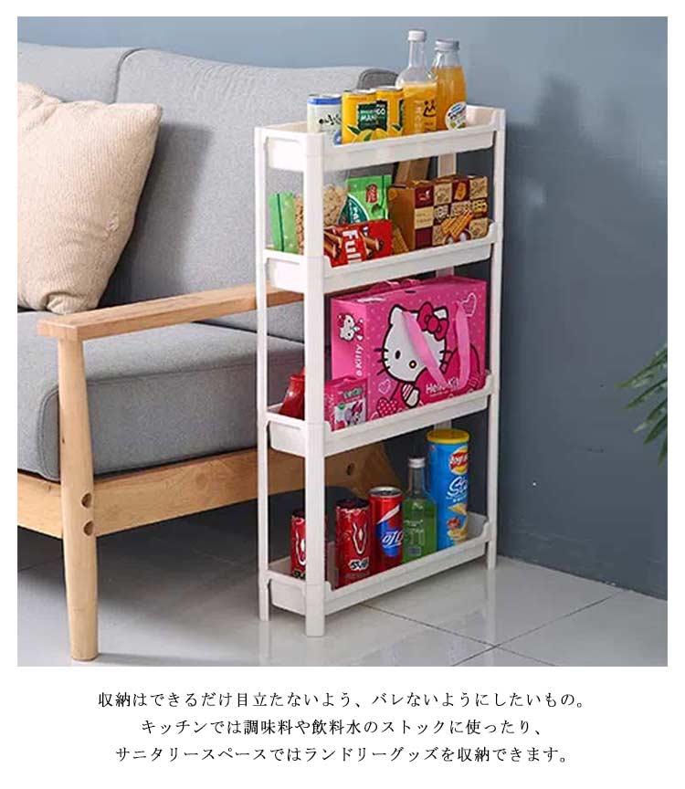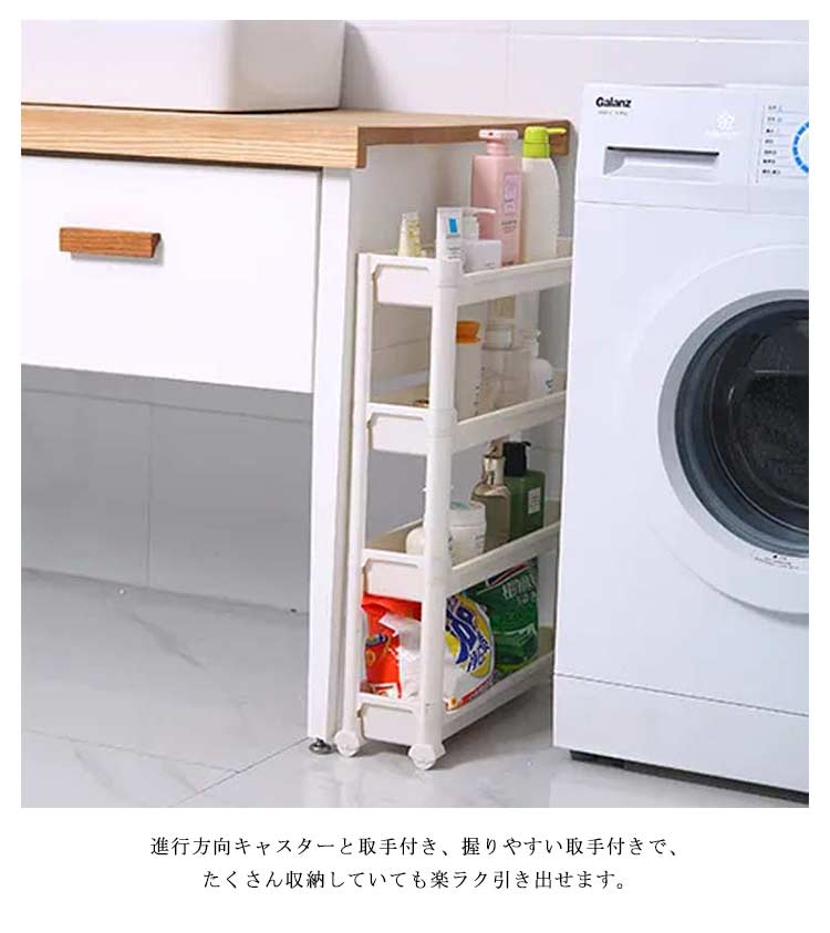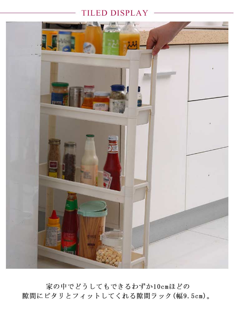| 家の中でどうしてもできるわずか10cmほどの隙間にピタリとフィットしてくれる隙間ラック(幅9.5cm)。 進行方向キャスターと取手付き、握りやすい取手付きで、たくさん収納していても楽ラク引き出せます。 使用時?収納時もスムーズに移動できます。 洗面スペースでは、ヘアワックスやスプレーを収納したり、シャンプーなどのストック入れとしても。見やすく、取り出しやすいのが嬉しいですね。 収納はできるだけ目立たないよう、バレないようにしたいもの。 キッチンでは調味料や飲料水のストックに使ったり、サニタリースペースではランドリーグッズを収納できます。 | |
