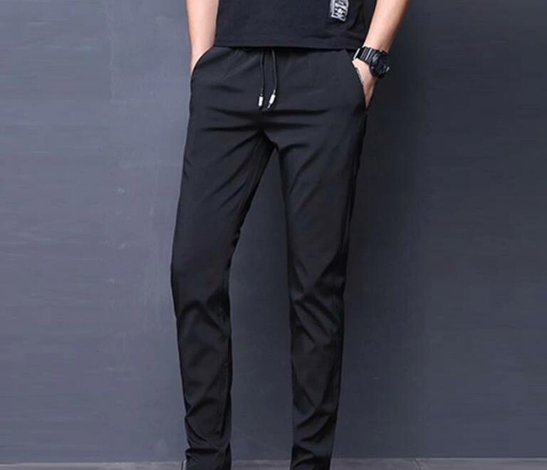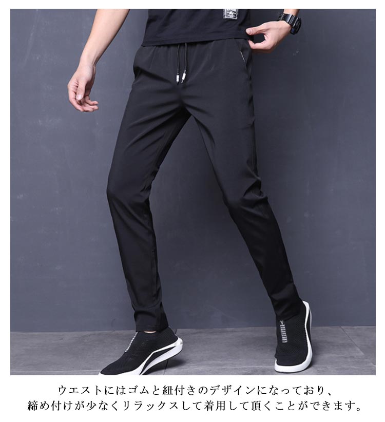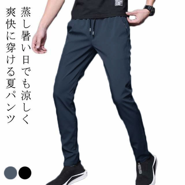 メンズ パンツ 接触冷感 大きいサイズ 夏 夏 ストレッチ 涼しい 清涼 涼感 吸水速乾 ズボン ゴルフパンツ チノパン アイスシルクパンツ ロングパンツ スポーツパンツ 無地 軽量 薄手 通気 ストレッチパンツ スポーツウェア 送料無料 グレー ブラック 黒