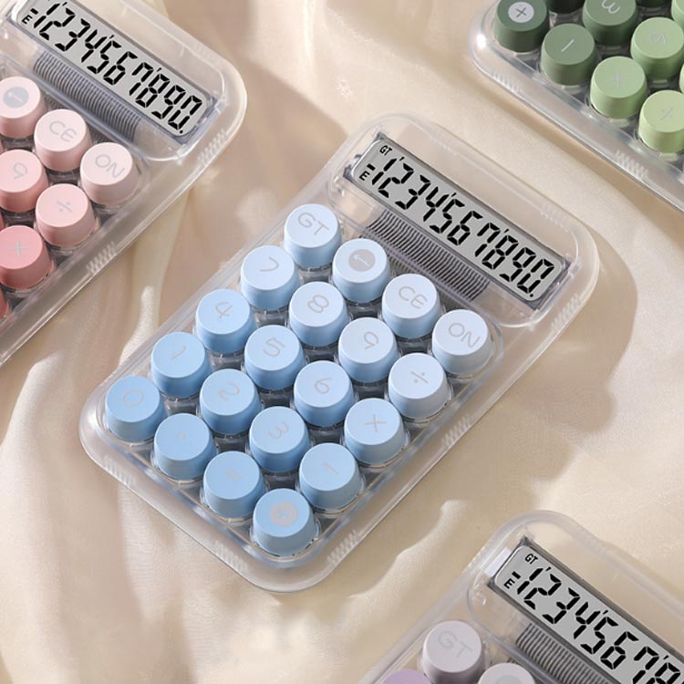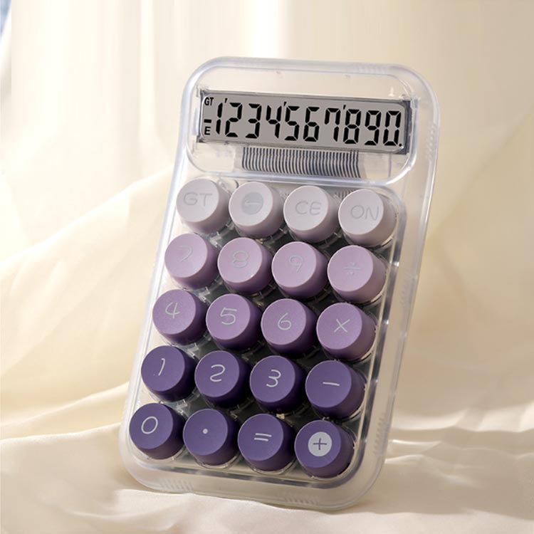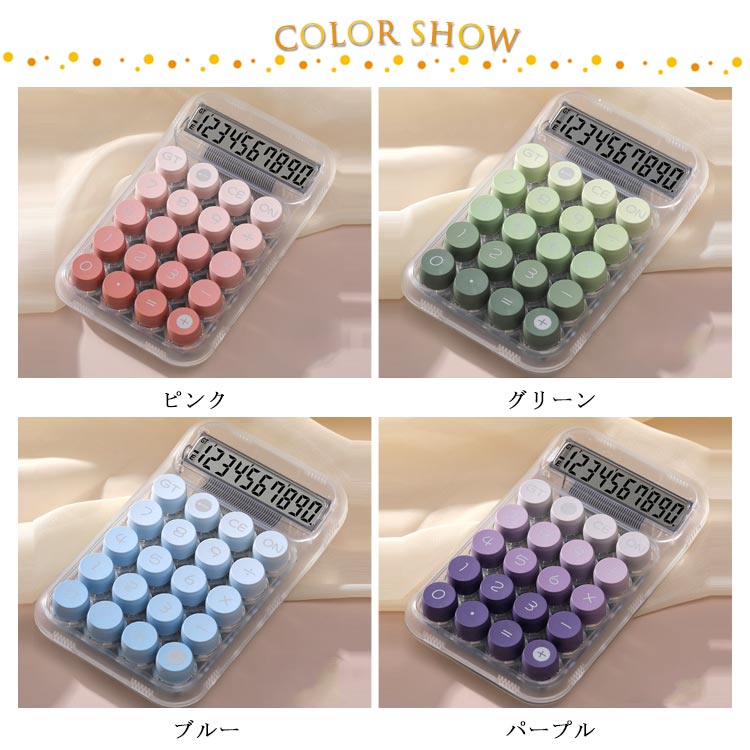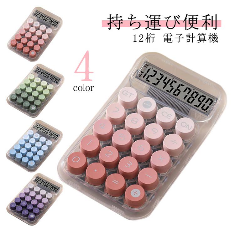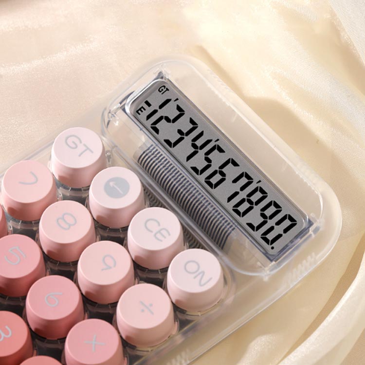 電卓 レトロ 10桁 簿記 立体的 丸キーボード クリア おしゃれ 丸形 タイプライター 可愛い 大型ディスプレイ 計算機 滑り止め オフィス 学校 勉強 事務 持ち運び便利 SMS映え ピンク